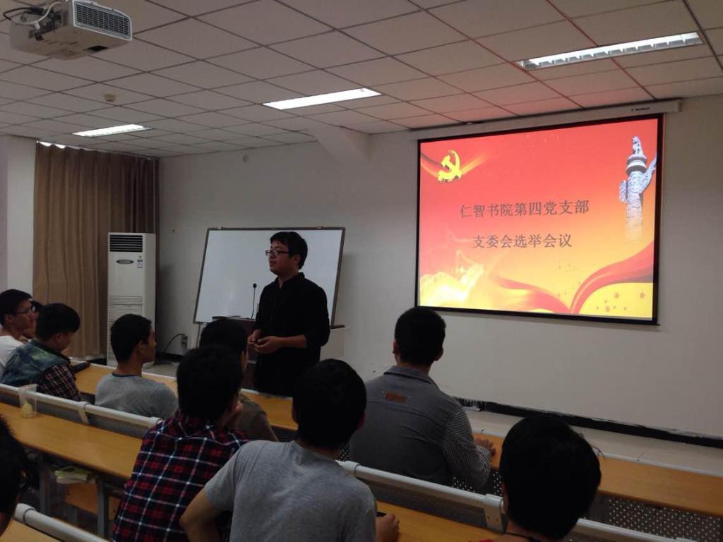 9月28号,仁智书院学生第四党支部支委会选举会议在第一教学楼C301成功举行,大会由朱性海老师主持,全体党员、预备党员参加。