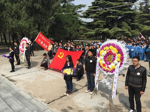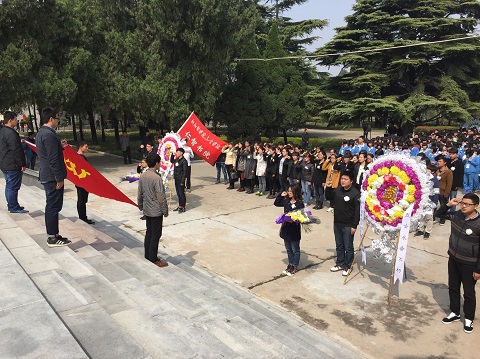 2015年4月3日上午,为缅怀革命先烈,弘扬爱国主义精神,纪念中国人民抗日战争胜利70周年。三全学院仁智书院副书记班锦带队,全体职工党员及学生党员来到新乡市烈士陵园,进行了“清明节,缅怀先烈”党员教育活动。