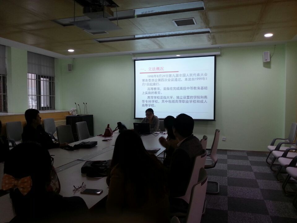 为贯彻落实省委高校工委、省教育厅《关于2015年在全省教育系统开展“依法治教年”活动的意见》文件精神,2015年10月22号上午,仁智书院书记、辅导员老师和生活老师在平原校区行政楼一楼第四会议室开展“依法治教年”专题学习活动。