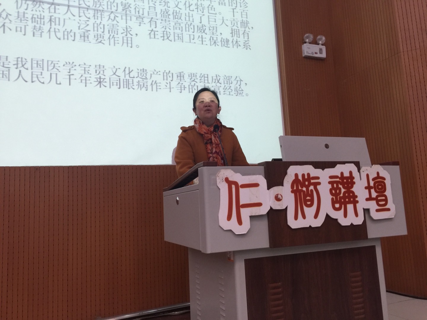 活动中,王忻教授首先向我们介绍了我国源远流长的中医治疗法,让我们对中医有了初步的了解,接着她针对预防近视、矫正近视等方面介绍了不同的中医疗法,以及眼部的平时护理。演讲完毕后,对同学们所提的关于近视的问题又做了详细的回答。