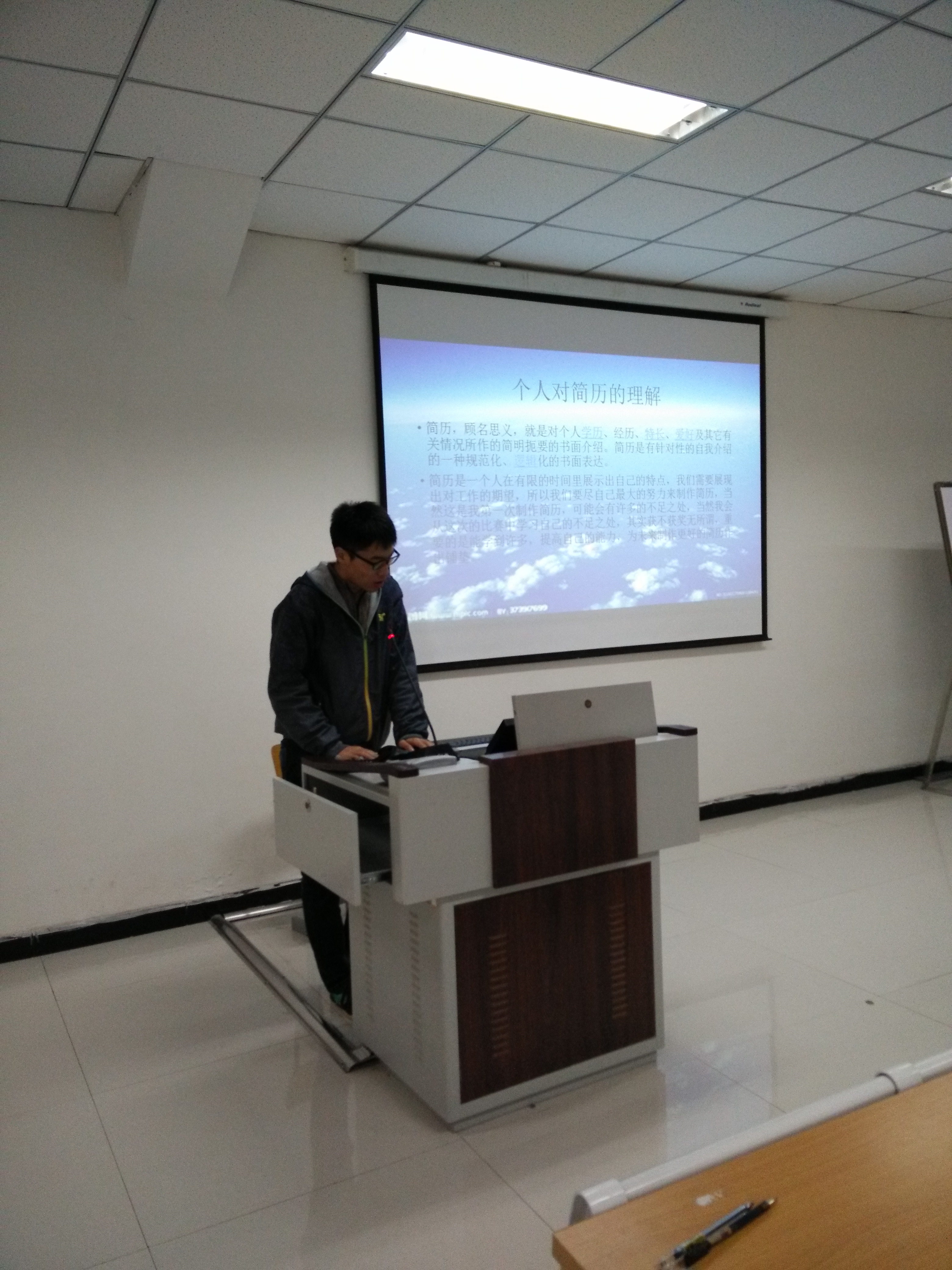 本次大赛由大学生就业创业指导服务中心主办,仁智书院承办,以“延展就业知识,实践职场技能”为主题,成功的帮助了学生确定就业方向。2015年11月19日,复赛正式开始。选手采用PPT演讲或视频的形式向评委介绍自己的作品,讲述自己的简历制作之路,点出自己简历的得意之处,为自己的简历加分。参赛选手都充满自信,