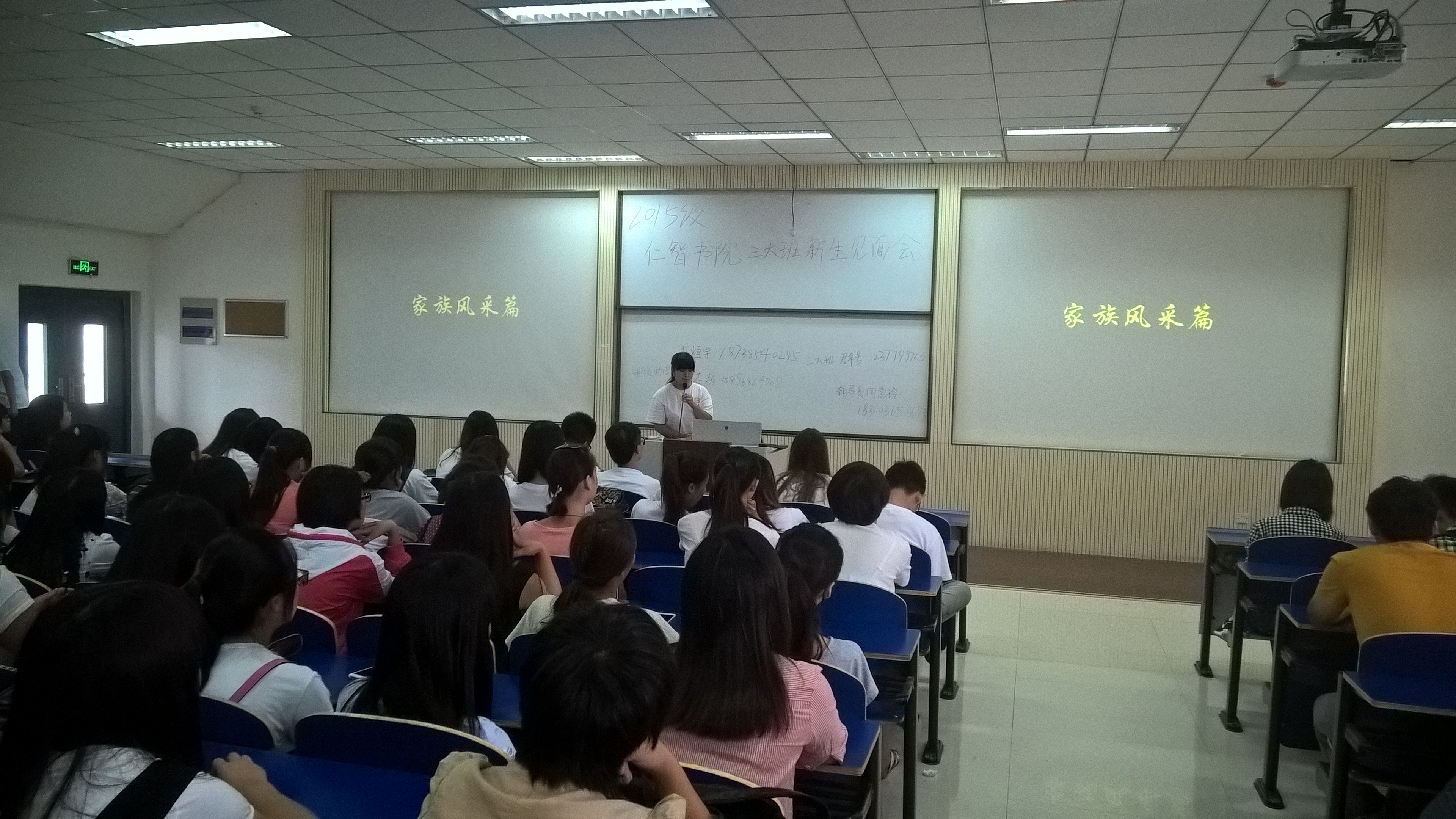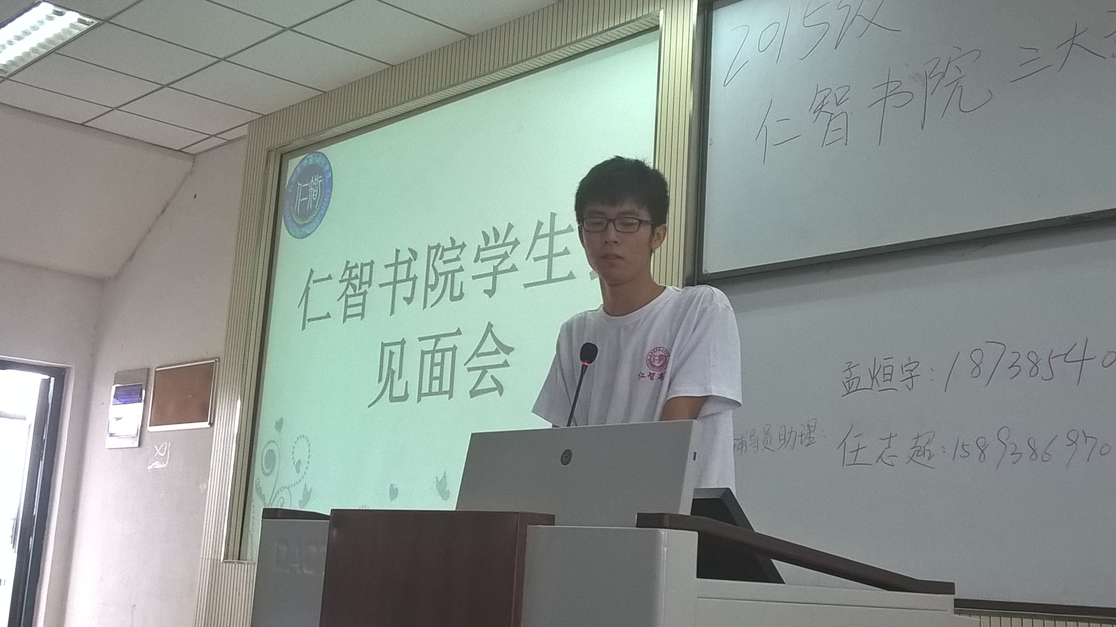 为了使大一新生对书院学生会工作有一定的了解,于2015年9月11日新生报到结束之际,仁智书院学生会主席及各部门主任与大一新生进行了一次大会面。