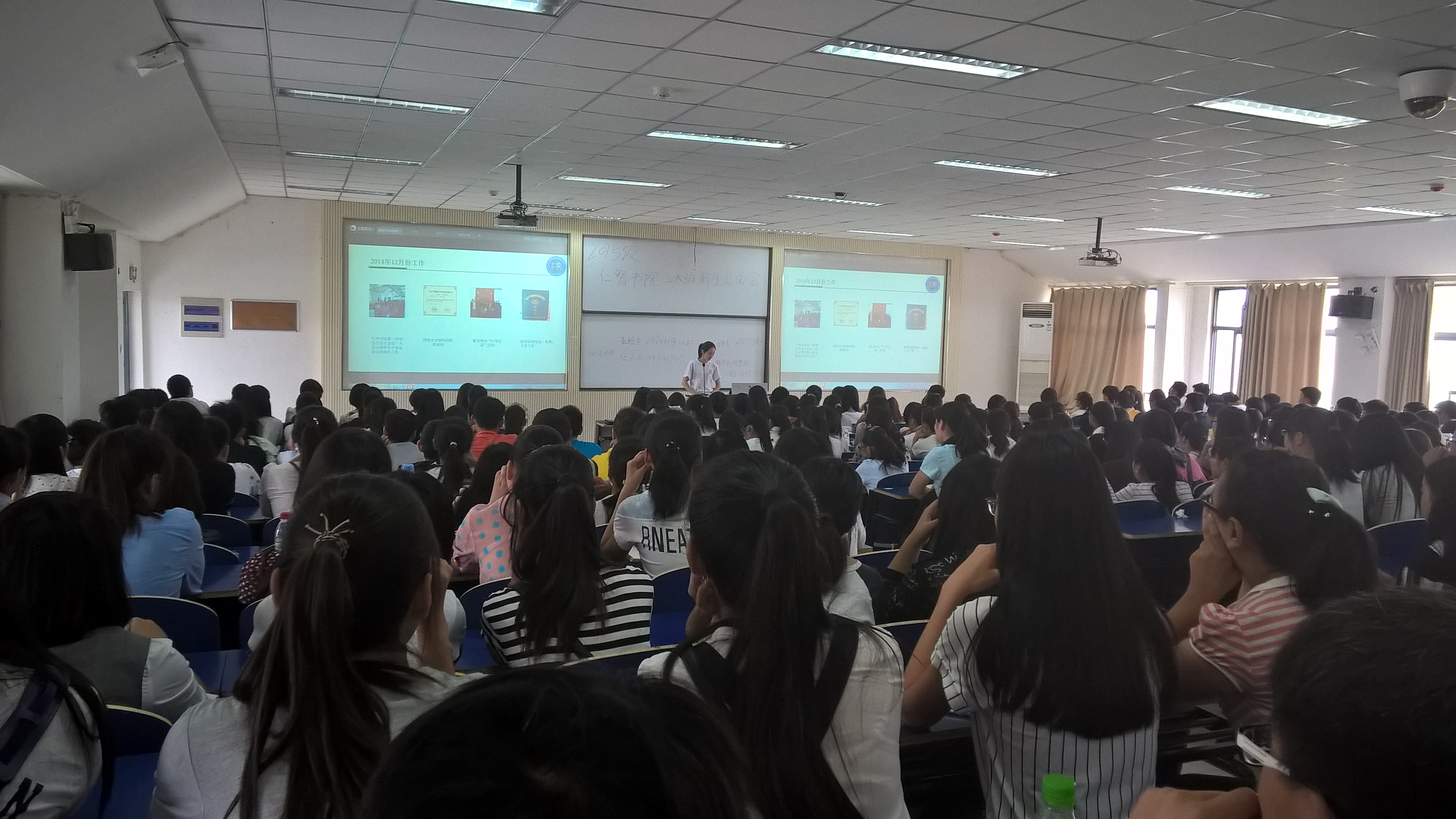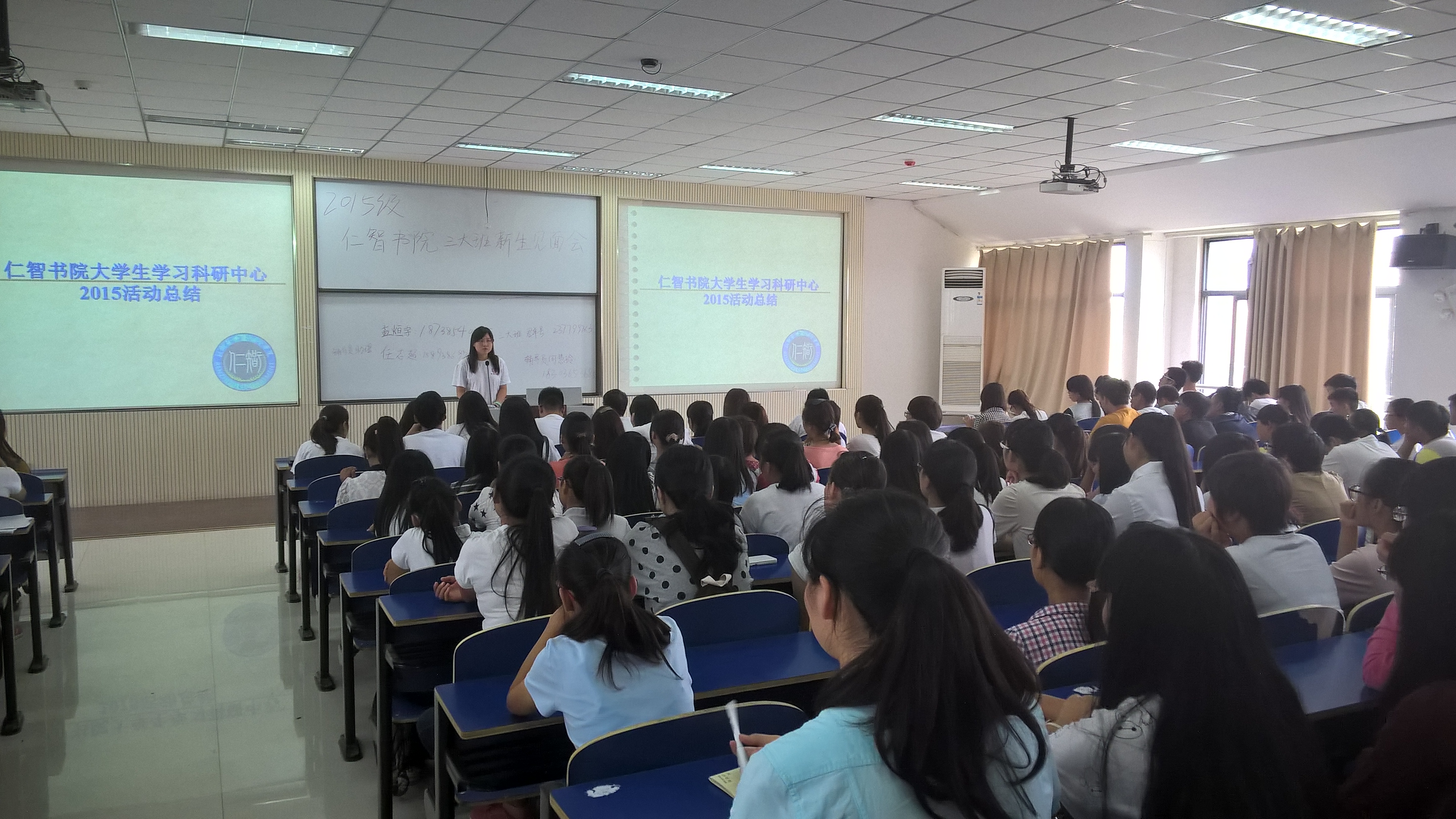 为了使大一新生对书院学生会工作有一定的了解,于2015年9月11日新生报到结束之际,仁智书院学生会主席及各部门主任与大一新生进行了一次大会面。