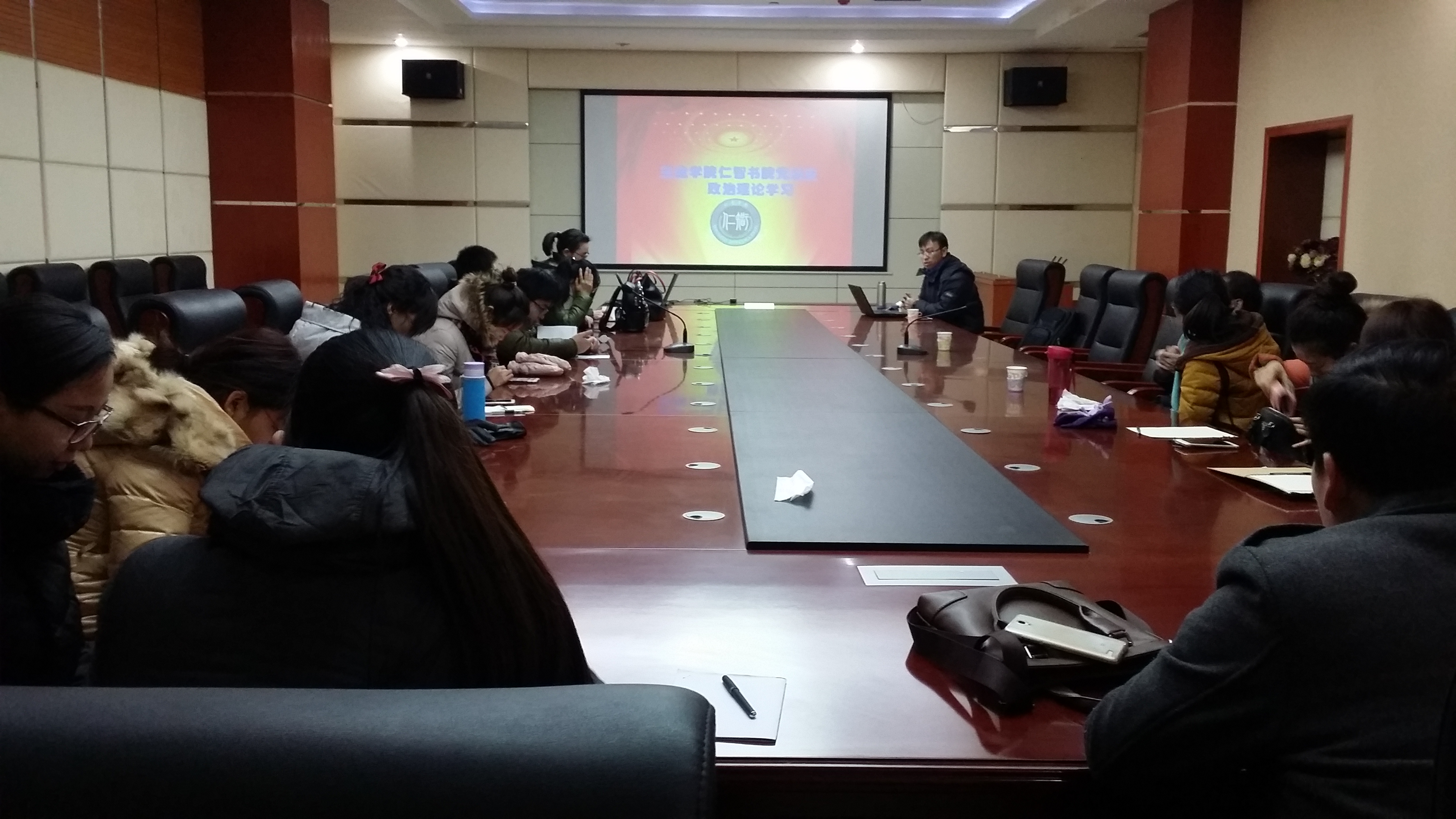 2016年1月25号上午,仁智书院副书记李印省、仁智书院副书记班锦及仁智书院全体辅导员老师、生活老师在新乡校区行政楼二楼会议室开展1月份政治理论学习活动。
