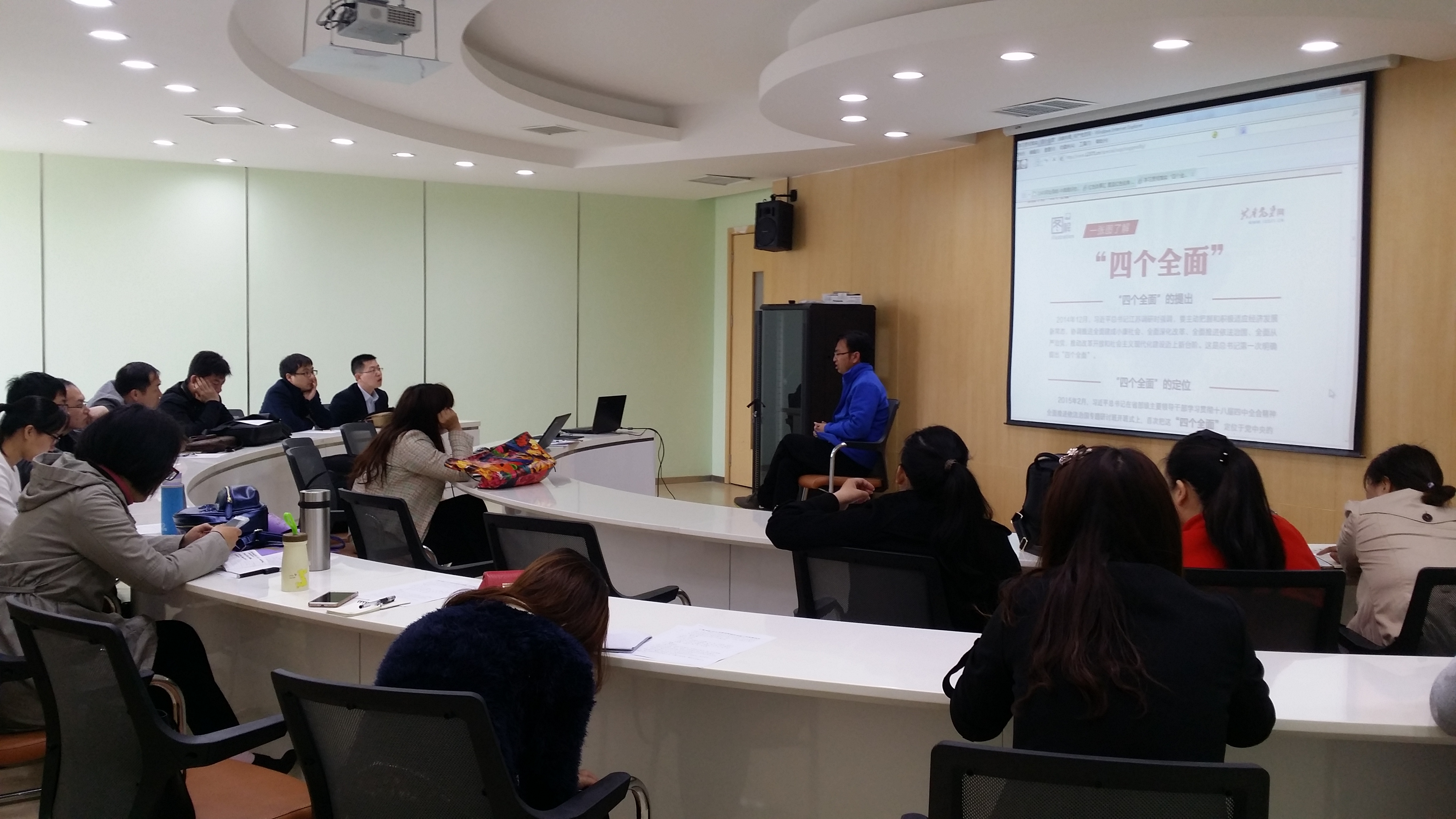 2016年4月6号上午,仁智书院副书记李印省及仁智书院全体辅导员老师、生活老师在平原校区行政楼第一会议室进行了4月份政治理论学习。