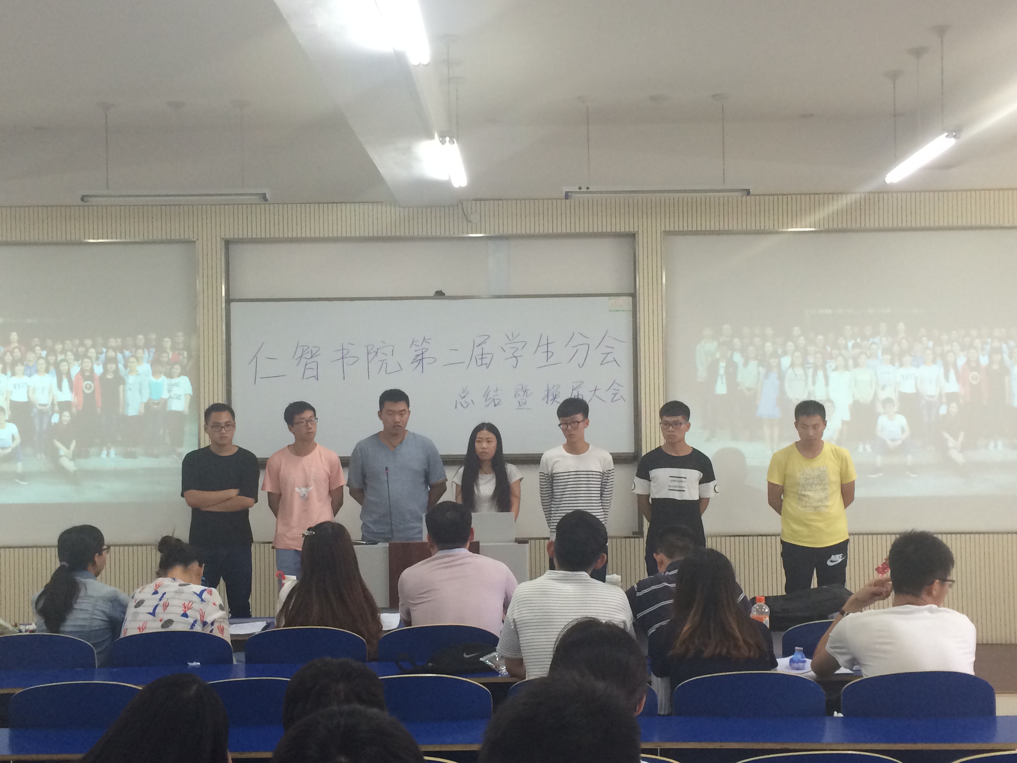 本报讯5月31日中午,仁智书院学生会在A201举办了换届大会。参加本次会议的有仁智书院学生会指导老师,临床医学专业15级二大班辅导员程俊老师,临床医学专业14级三大班辅导员杨洛老师,临床医学专业15级三大班辅导员王鹏飞老师,眼视光学、生物制药专业辅导员唐玉玲老师,口腔医学技术专、英语专业辅导员刘渊博老师以及学生会主席团,各部门部长和参加本次竞选的干事们。