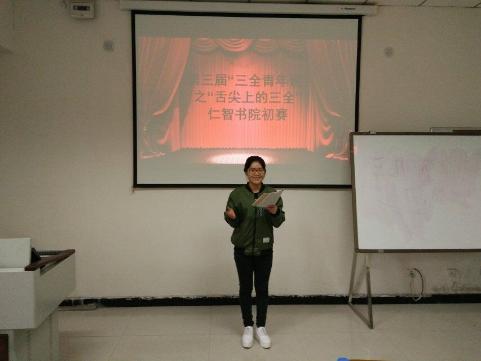 2017年3月新乡医学院三全学院为了增强大学生的思维创新能力,增加自信,锻炼口才,由仁智书院大学生学习科研中心承办的第三届“三全青年说”之“舌尖上的三全”演讲比赛的初赛正式开始。