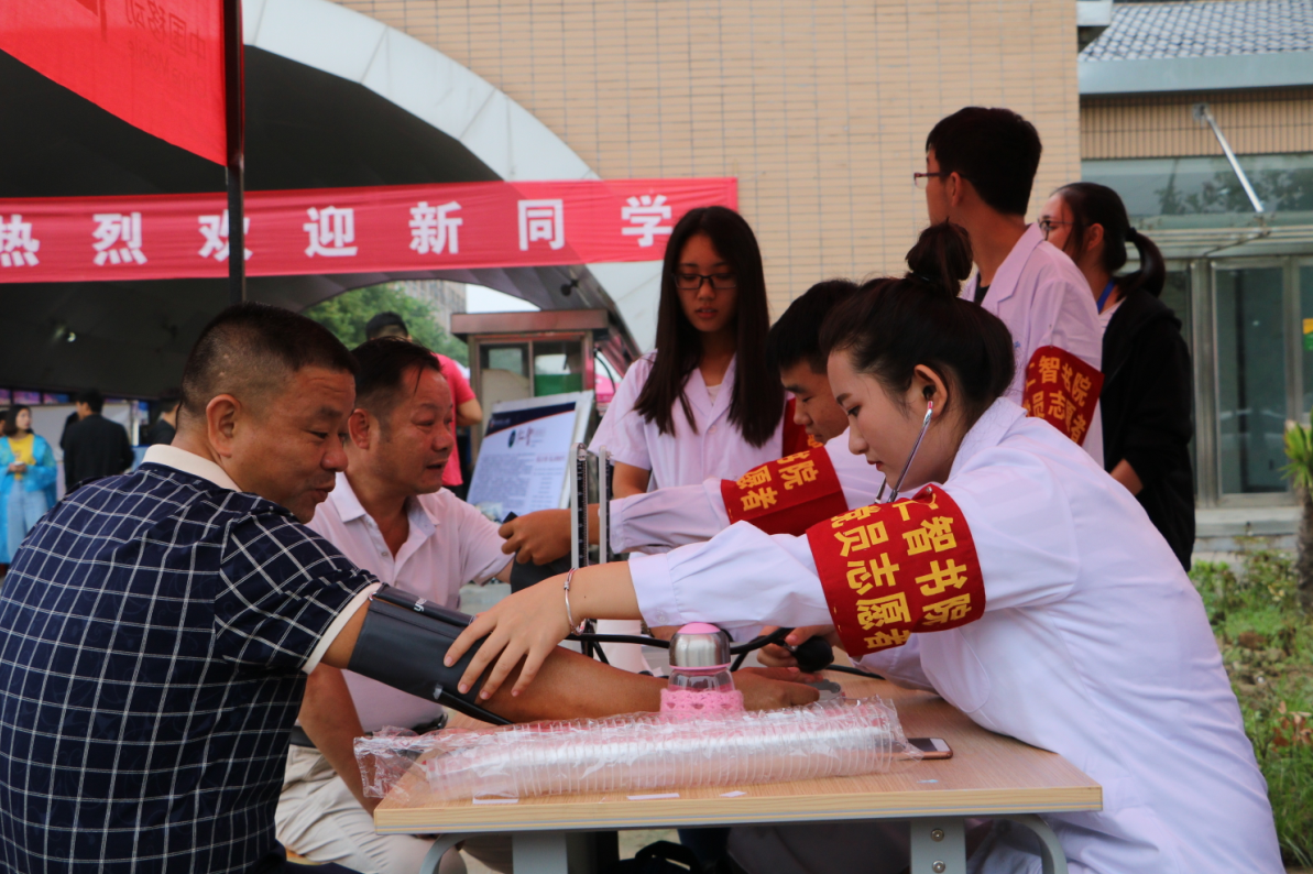 同时,本次我们创新迎新模式,精心设计贴心创意,在迎新处设置新生辅导员信息牌,扫二维码即可进入大班学生管理群。并且在临床学院的大力支持和提供相关物资下,迎新处还开展大学生膳食结构调查咨询活动,其中包括测血压、血糖、心电图等,使大一新生及其家长对自己的身体健康状态有所了解。艾滋病和早癌早治宣传展台吸引了大量的学生及家长参观,现场发放宣传书籍、张贴宣传海报,提高了大学生对艾滋病和癌症的了解,增强了防艾和防癌意识。