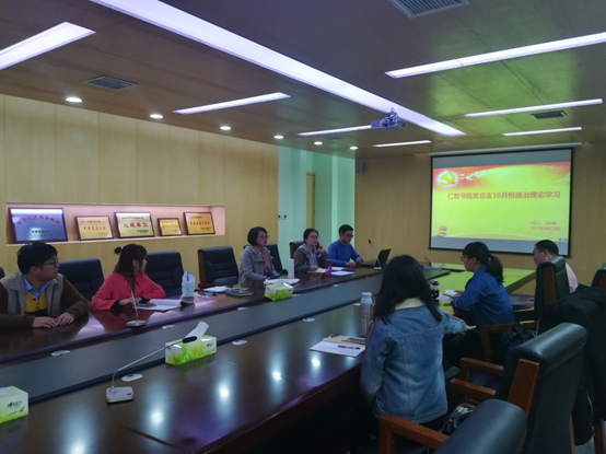 仁智书院党总支严格按照学院党委部署,高度重视,周密部署,抓住重点,营造氛围,扎实推进,于10月20日在行政楼第三会议室,马苏娟书记主持召开了十月份政治理论学习会议,积极开展学习习近平总书记在十九大的报告,在工作和学习生活中践行此次的报告内容。