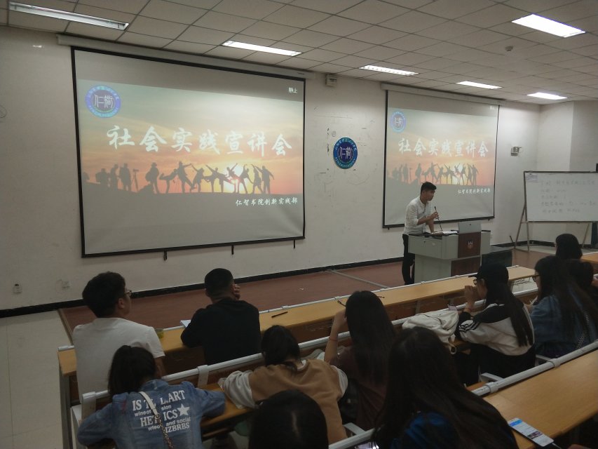 为加强对暑期社会实践活动的宣传力度,让我院学生对暑期社会实践有一个深刻的认识,我院创新实践部于2018年5月23日下午6点在谨学楼D1教室举办了暑期社会实践活动宣讲会,本次宣讲由2017年的优秀团队负责人张楠和张金鹏为同学们进行讲解。