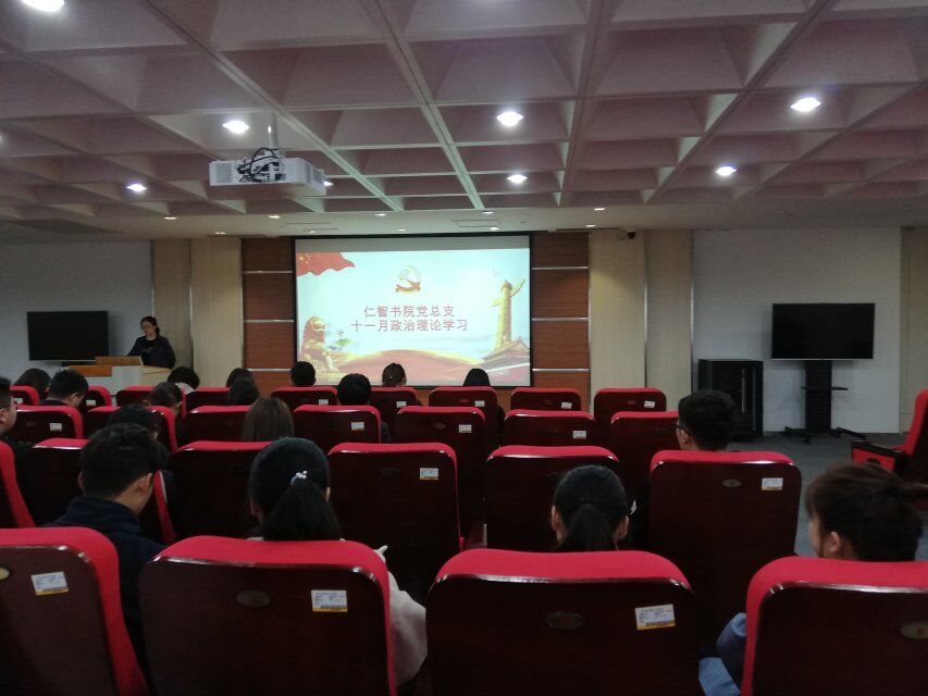2018年11月9日下午,仁智书院党总支全体党员在行政楼第三会议室组织进行11月份政治理论学习。召开以“党风廉政教育” 为主题的政治理论学习会议。会议由党总支书记马苏娟同志主持。