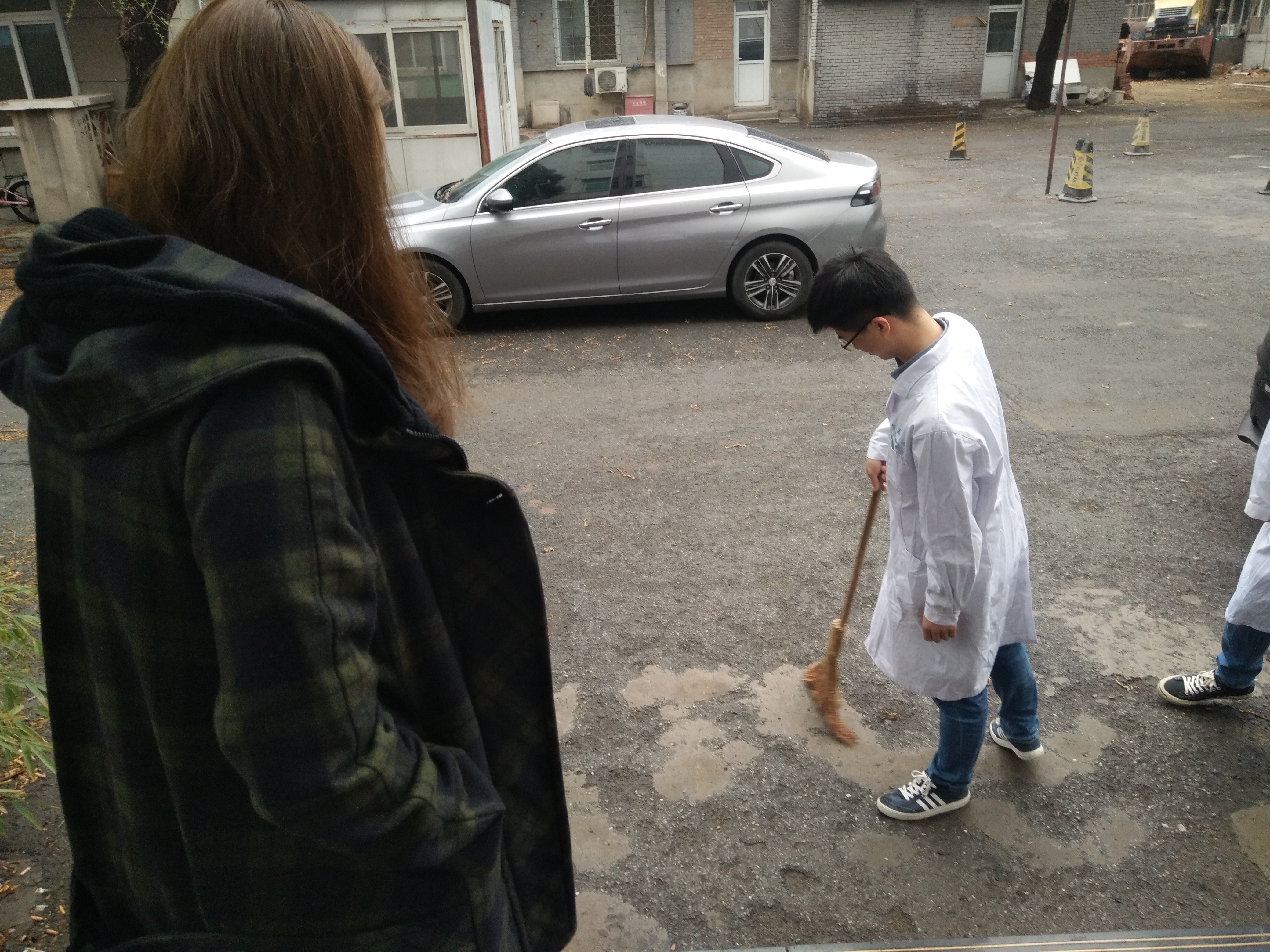 中美医院的见习生有三个班,他们自发的安排轮班,对自己上课的教室,以及见习轮转的科室进行打扫卫生工作。每天中午科室见习结束后,同学们会主动到楼层的卫生器具放置处,拿簸箕和拖把,把科室的地面打扫的干干净净。同时,还有同学在科室医生的指导下,主动对病人进行简单的护理和治疗。