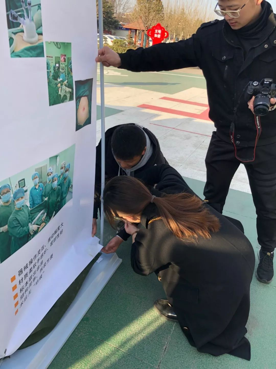 志愿者们不怕苦不怕累,充分发扬无私奉献、助人为乐的雷锋精神:一大早,志愿者们就提前来到了义诊现场,搬帐篷、搬桌椅、搭建义诊场地,发放健康科普宣传资料,安装摆放宣传展板,尽自己一切努力为义诊活动服务,并充分利用平时所学,为前来咨询的居民量血压、讲解日常保健和疾病预防知识,耐心地为他们解答疑难,提高群众对疾病的认识。