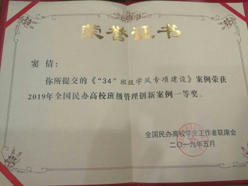5月10-11日,第五届全国民办高校辅导员工作高峰论坛在重庆举行,我校荣获多项荣誉。其中仁智书院辅导员窦倩的班级管理案例《“34”班级学风专项建》,则从300多份案例申报中脱颖而出,荣获“全国民办高校班级管理创新案例一等奖”。窦倩老师明白,只有自己足够优秀,才能做好学生的思想政治教育工作,以下是她为此做的努力。