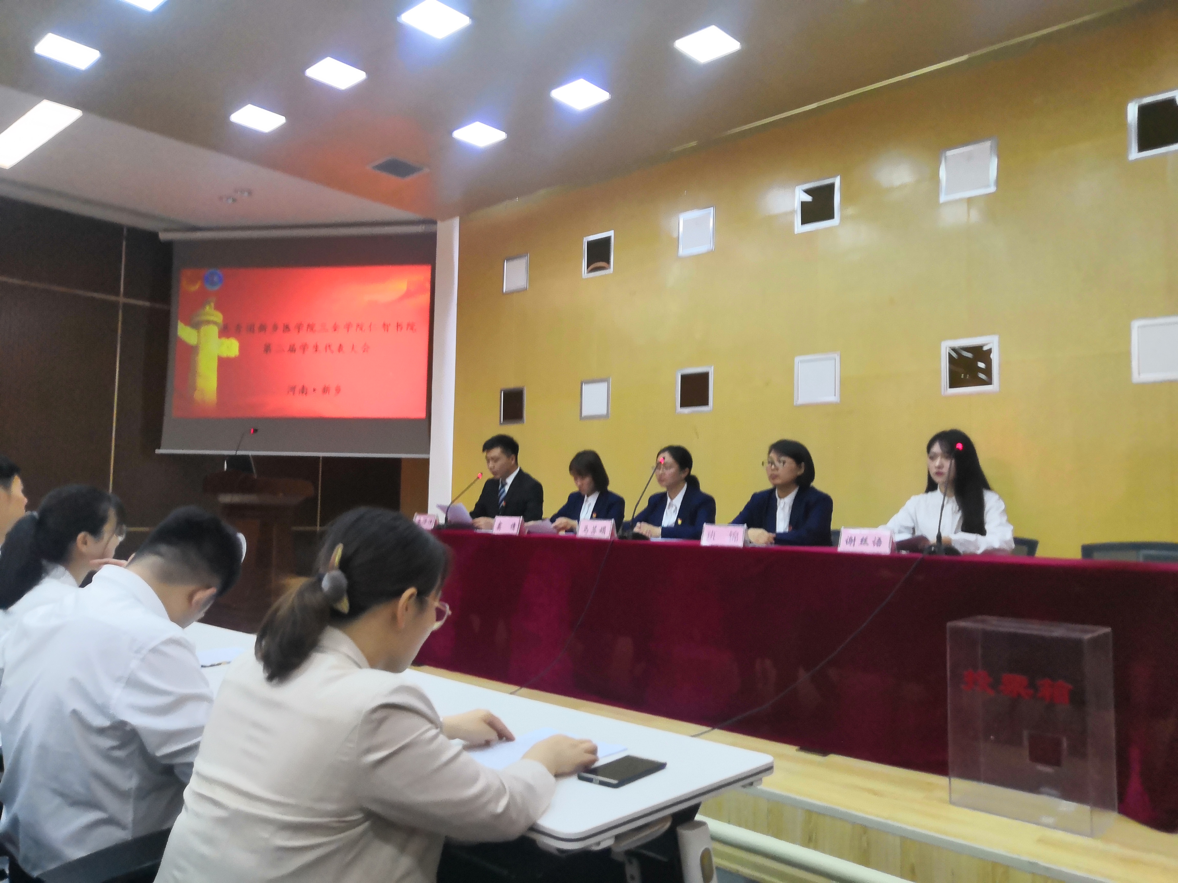 会议按计划听取了仁智书院第五届主席杨梦迪同志《共青团新乡医学院三全学院仁智书院第二届学代会第二届委员会工作报告》,听取了仁智书院汪晓萌同志的《共青团新乡医学院三全学院仁智书院第二届学生代表大会提案工作报告告》,接下来由学生代表张耶林同志介绍学生委员会委员候选人的基本情况,最后通过学生代表严肃认真的投票,选举产生了李昱良、薛家立、赵鹏艳、叶凯文、刘林峰5名同学当选为仁智书院第二届学生委员会委员。