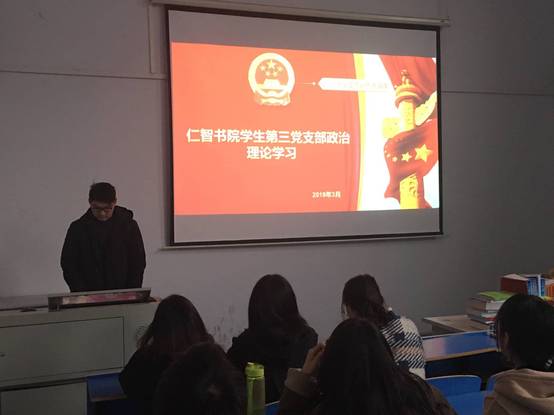 2018年3月8日,在郑州市第二人民医院实习基地仁智书院学生第三党支部召开了三月份政治理论学习会议,会议主题为学习贯彻两会内容。