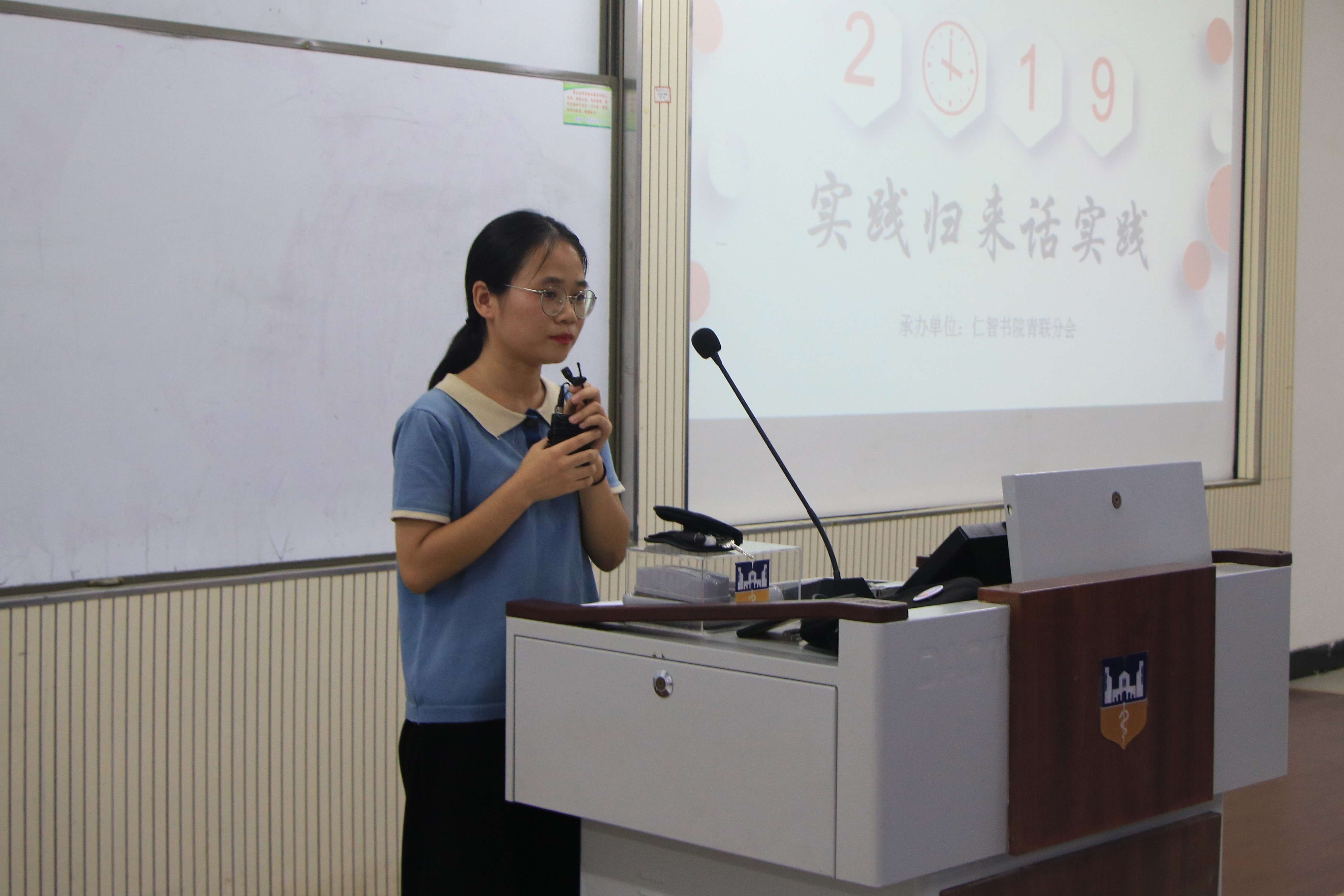 9月8日下午18:30至20:00,仁智书院青年志愿者联合会在谨学楼A201和A202教室举办了“实践归来话实践”主题交流分享会。为了使2019级新生充分了解暑期社会实践活动并认识到其重要性,本次活动特邀书院优秀团队为新生们分享暑期社会实践经验与成果。
