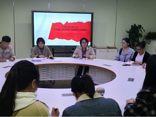 仁智书院党总支于10月9日在行政楼第二会议室召开部署会议,并具体部署10月份仁智书院党总支和各支部主题教育活动工作计划。会议由仁智书院党总支副书记班锦主持,仁智书院党总支全体职工党员和各支部书记及委员共计15人参加。