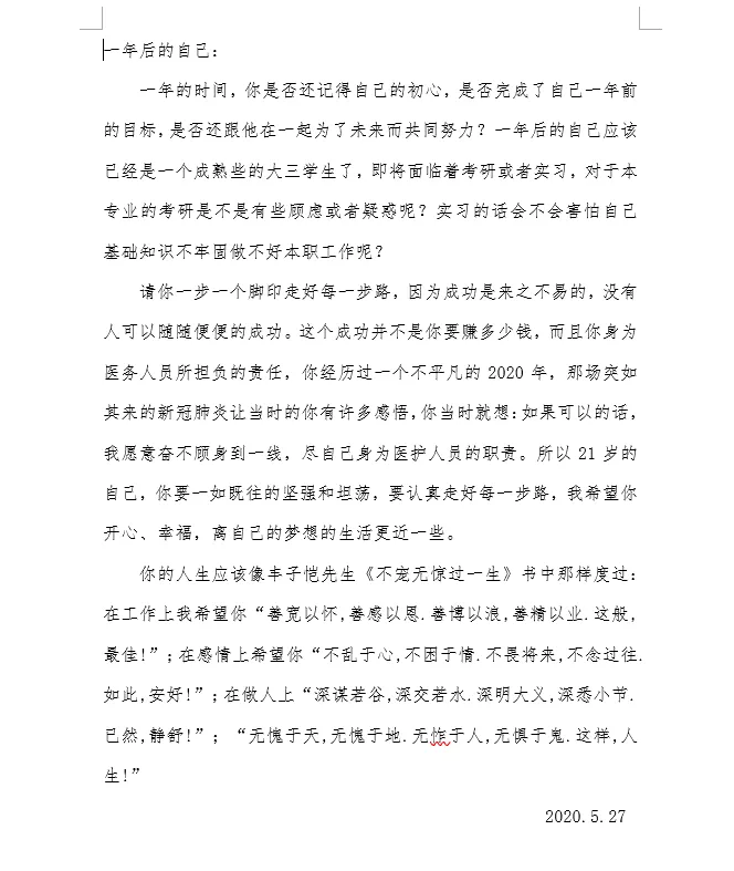 活动二:“心灵慢递,与心对话”。活动包含写封信给一年后的自己,向陌生人说出自己不敢说出的话,送给毕业生学姐学长最真挚的祝福等形式。在此活动中书院同学都踊跃报名参加,认真感受,与心灵的对话。由于活动形式的时间设定,我们筛选出一部分作品将于2021年5月25日进行展示。此次活动以书信的方式开展,每一份书信都表达着同学们心灵的温暖,展现了最为柔软的一面,同时也体现了同学们积极健康心理状态,并通过与同校师生互写书信解决了部分同学对学习、生活等方面的困扰。