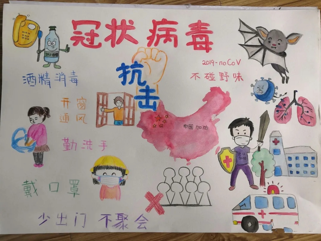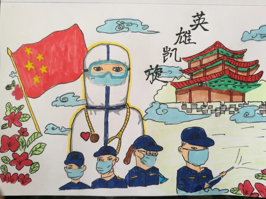 活动四:“妙笔生画,展心灵美”。此项活动中,同学们通过手抄报的形式的表达对疫情逆行者的赞扬敬重之情,同时呼吁大家积极关注心理健康,紧跟社会正能量,保持心灵之美。