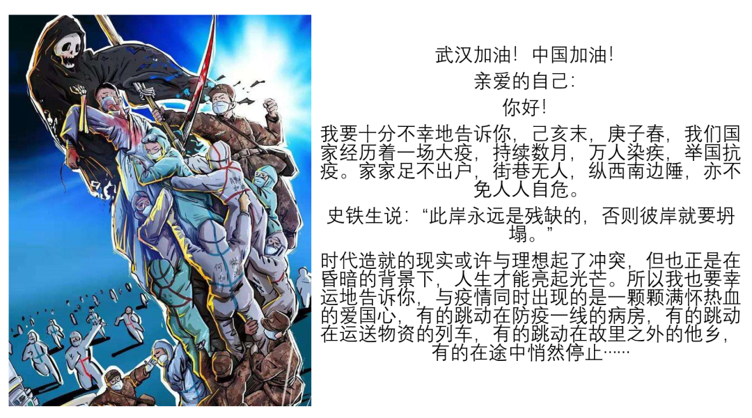 在这个特殊的时期,仁智书院第四届“同心抗疫 为爱而行”艺术节—“花开时节又逢君”致未来自己的一封信活动也已接近尾声。在此次作品征集活动中,同学们积极参加,踊跃报名,向我们分享了许多疫情期间的感悟,以及对未来自己的期望。