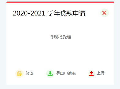 申请完贷款后,首页会显示贷款进度条,显示该贷款申请的进度,申请进度主要有5个节点分别为:在线提交、现场受理、审批中、审批通过、发放到高校。