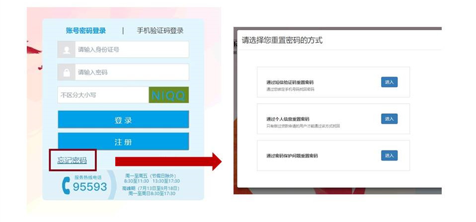 忘记了登录密码,可以点击“忘记密码”选择重置方式重置密码: