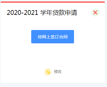 点击合同卡片的修改按钮,点击下一步填完贷款申请信息提交保存成功后会提示选择贷款签订方式