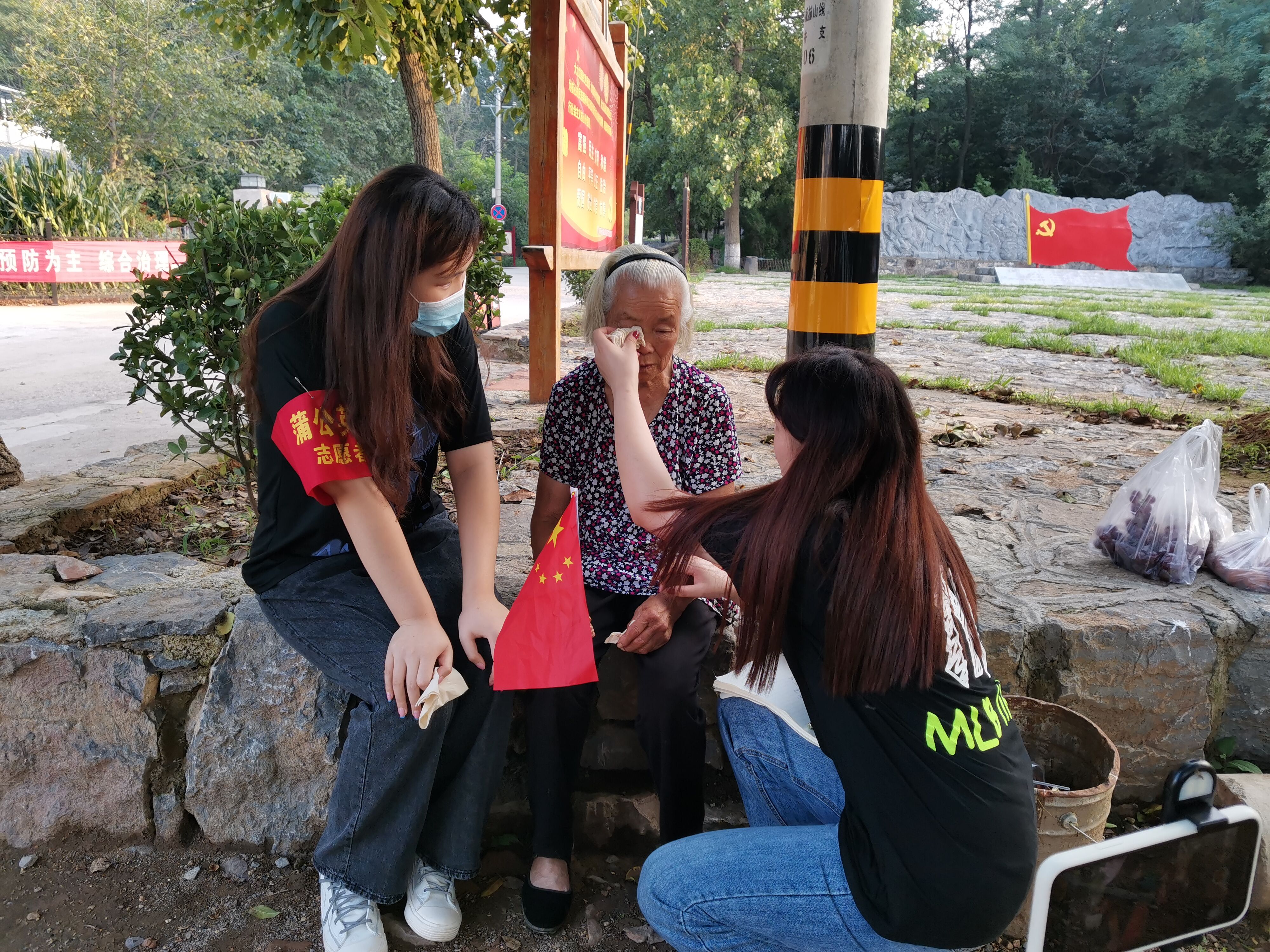 本次实践活动还进行一场特殊的采访,抗美援朝战士王大王的遗孀张奶奶接受了队员们的访问,奶奶虽然已经90岁高龄,却依然精神矍铄,和蔼可亲。在采访时她说起了王爷爷的抗战历史和体会,表示了对于祖国繁荣富强下自己生活的安稳和幸福,随后奶奶也提到了王爷爷抗战下对于祖国鞠躬尽瘁舍己为人的精神对于孙辈参军有极大的影响,在整个采访过程中奶奶一直紧握着同学们的手,她嘱咐队员们一定要做一个对祖国有用的人。