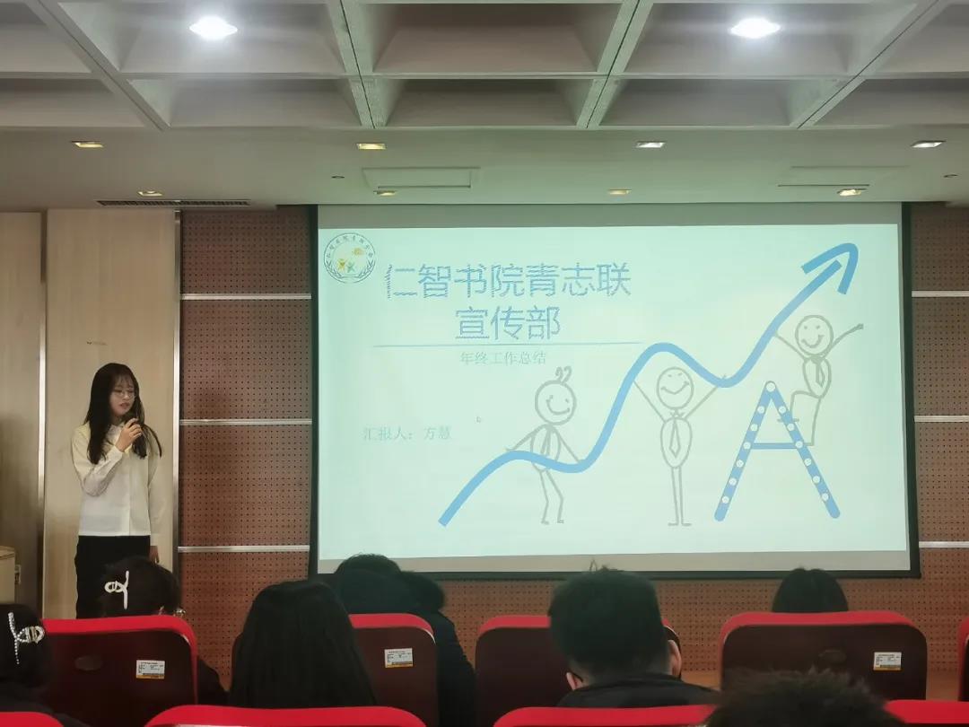 会议前期,主持人上台致开幕词,并介绍组织汇报顺序,仁智书院青志联主席韩若男进行会前讲话,针对“学生组织志愿工作”合理开展进行建议,希望与学生组织共进退,在自身做好基层学生志愿者服务工作的同时提高自己的工作能力,与学生组织共进退,打造一个氛围优良的学生组织。会议中期,学生组织按部门上台进行汇报展示,窦倩老师与主席团成员进行听取打分,及时记录述职中出现的问题,了解各部门工作职能,以便学生组织日后工作合理分工,也使窦倩老师进一步了解学生组织,看到成果。会议后期,老师及主席团打分完毕,工作人员收取打分表,窦倩老师上台对此次大会进行总结,提出不足,并对学生组织予以厚望,希望学生组织在以后的工作中摆正自己的位置,摒弃不良风气,做好服务者,做好师生沟通的桥梁,注重人才培养,自己也会积极投身学生组织的建设中,与学生组织共进退,为打造一个优秀的学生组织而不懈努力。