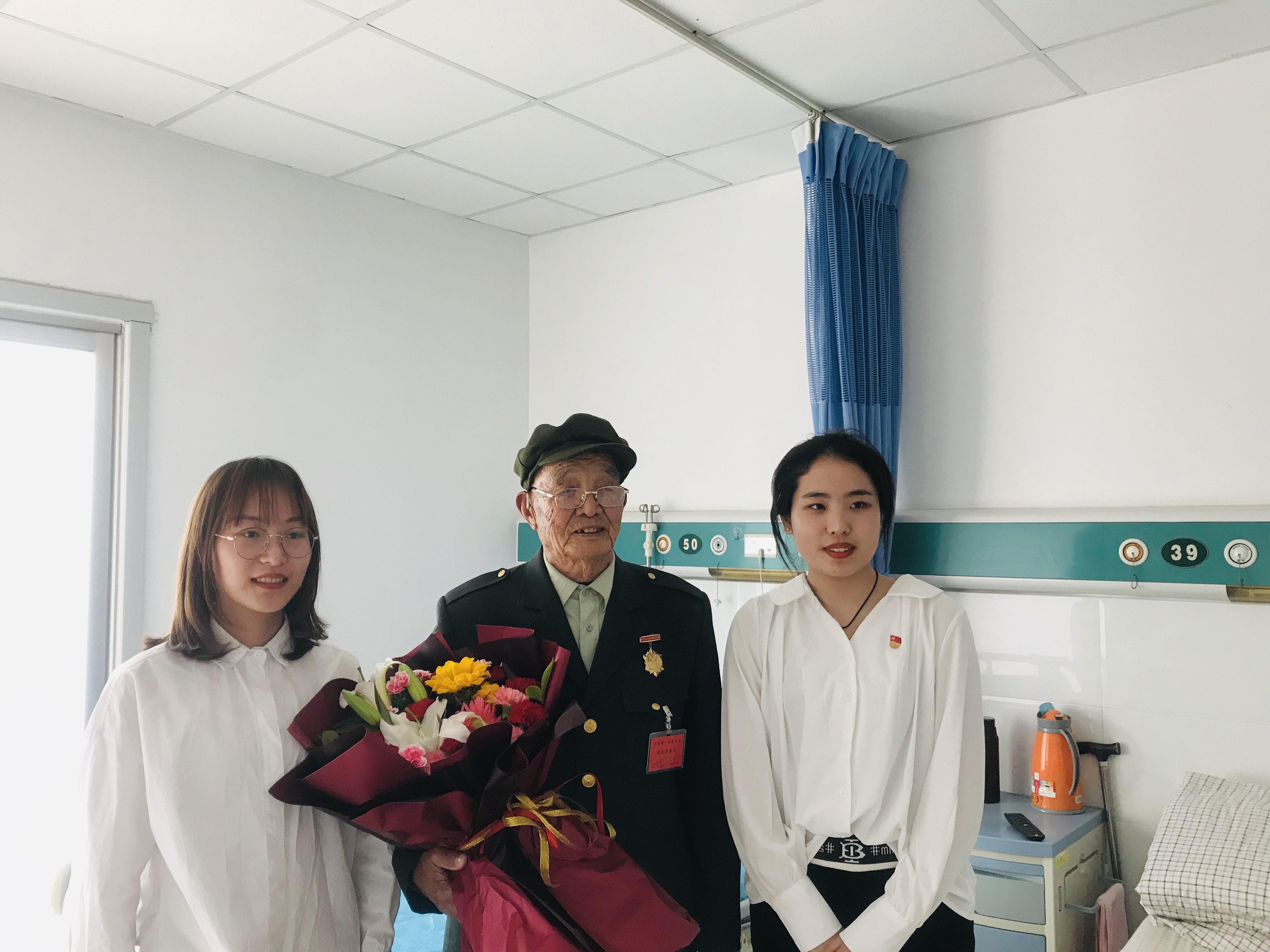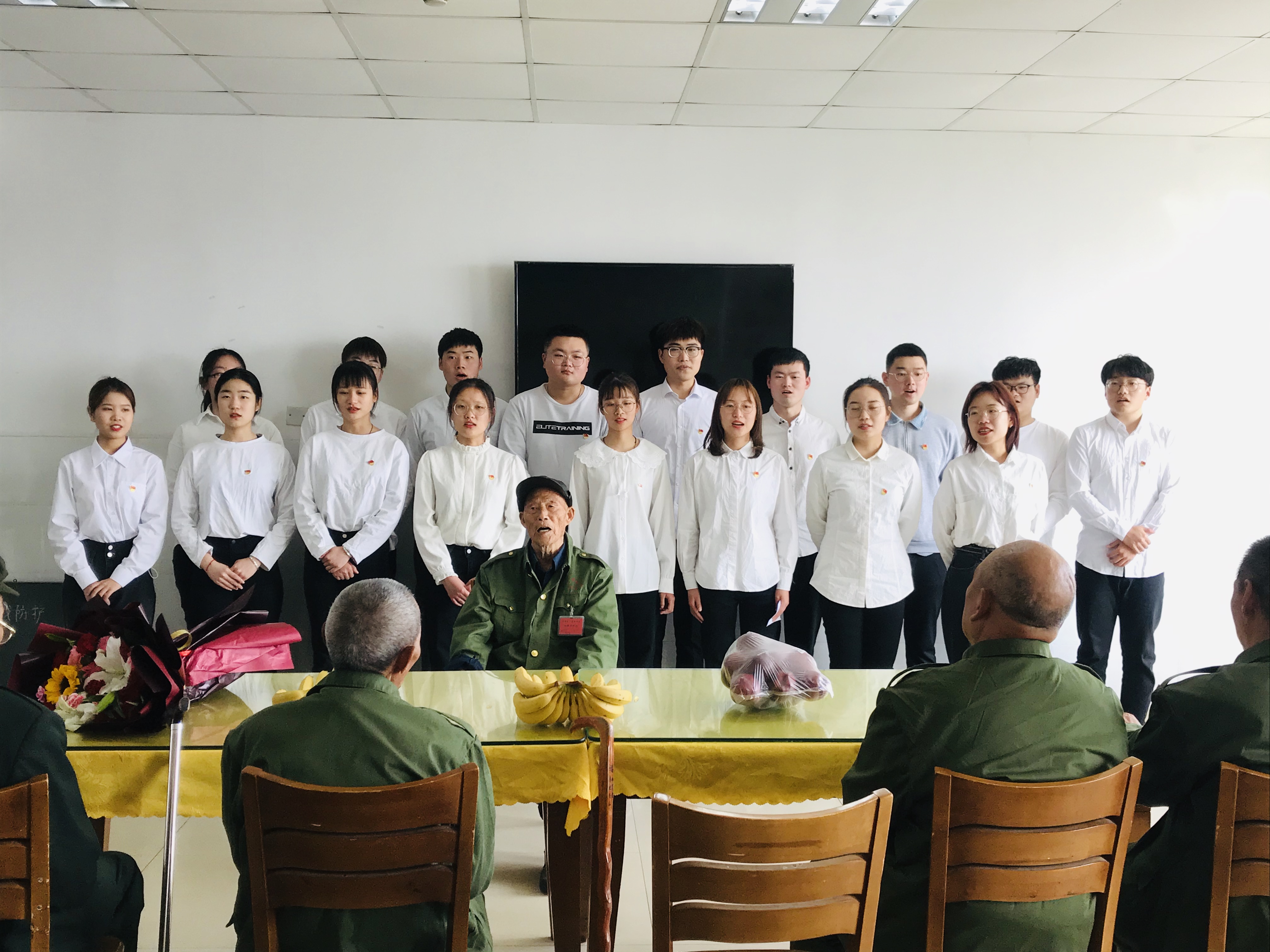 93岁高龄的马书庭老先生虽然行走虽稍有不便,但是红光满面、精神矍铄,胸前佩戴的奖牌和纪念章熠熠生辉。马老先生1944年加入中国工农红军,1945年加入中国共产党,先后参与了抗日战争、解放战争、抗美援朝,讲到他们那一代人面对敌人侵略的英勇事迹和光辉历程,声音沙哑、眼眶湿润,油然而生的爱国热情感染了在座的每一位党员,老一辈革命家凭着坚定的信仰和忠诚,磨砺出了共产党人的革命奋斗精神,同时也让大家看到了老一辈共产党员对党忠诚的坚定信念和清正廉洁的高贵品格。随后,学生党员们为老红军们带来了精彩的文艺节目《舞蹈—清风徐来》,最后,一首合唱歌曲《没有共产党就没有新中国》更是唱出了所有人的心声,将整个活动推向高潮。党员们精彩演绎也深深感染了现场的每一位老兵,一起加入合唱唱,掌声雷动、不绝于耳。学生党员们还走进老荣军的房间,开展志愿服务活动,帮助这些将近百岁的老人整理衣物、打扫卫生、修剪指甲。