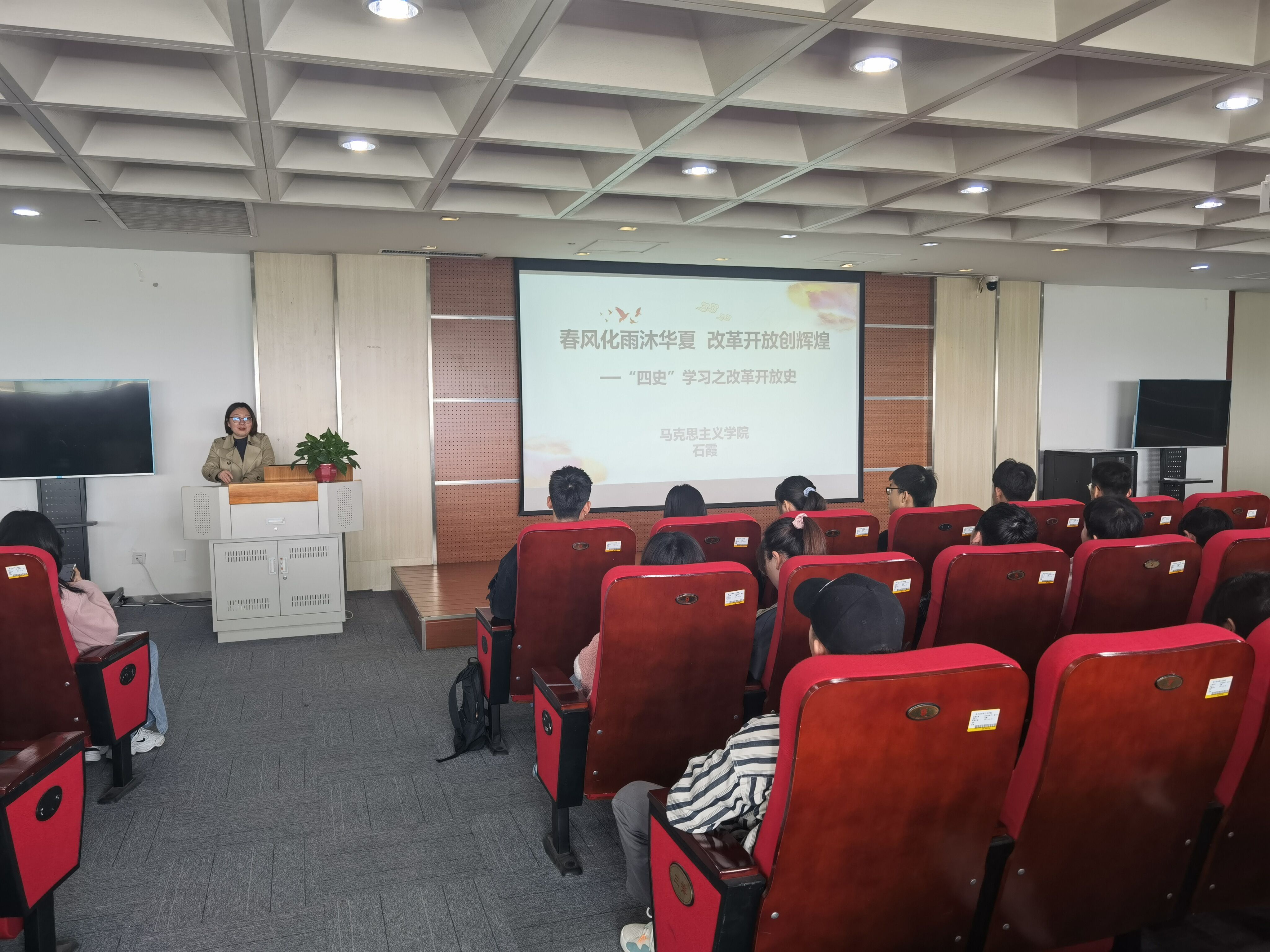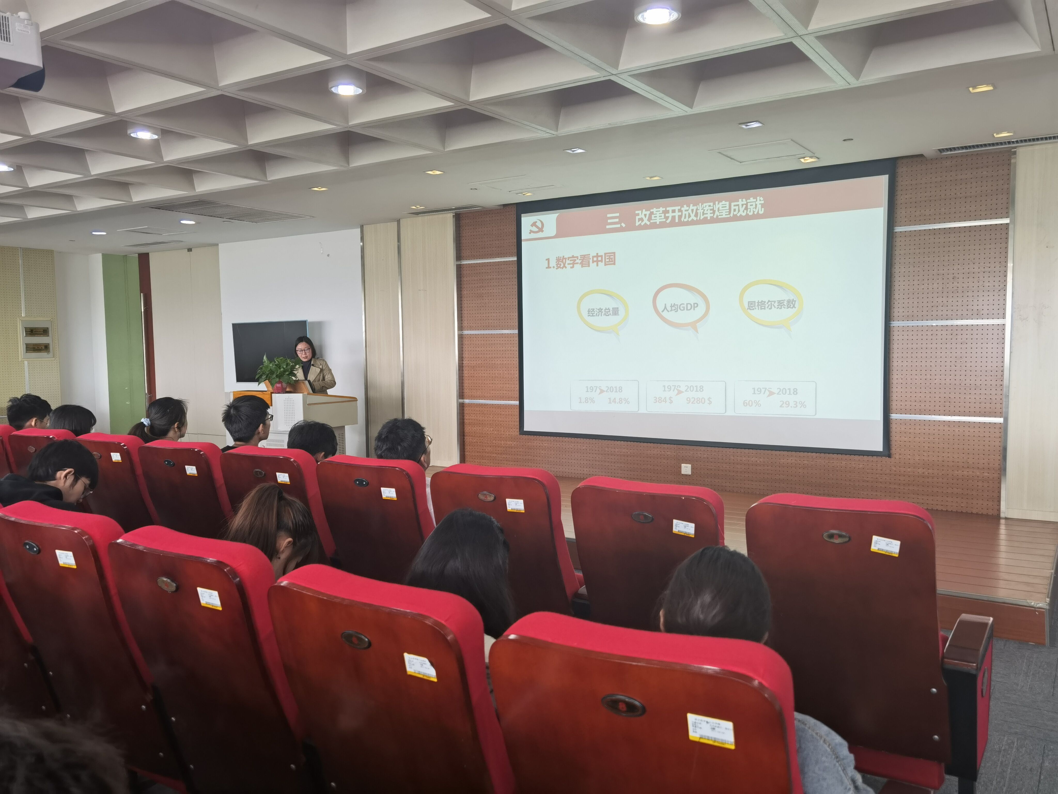 此次活动特邀学校党史学习教育理论宣讲团成员、马克思主义学院毛泽东思想和中国特色社会主义理论体系概论教研室主任石霞老师主讲本次的专题党课。平原校区全体党员、入党积极分子、推优学生干部等共计100人参加此次党史主题教育活动。石老师以“春风化雨沐华夏,改革开放创辉煌”为主题,通过改革开放史的历史事件,声情并茂地为我们讲解了改革开放前期的历史发展背景、改革开放时期发展过程以及改革开放最终取得的辉煌成就。事实证明,改革开放使我国发生了翻天覆地的变化,使我国发生了由站起来到富起来再到强起来的伟大变化。石老师的讲解让我们更加深刻的了解改革开放时期我们党所做出的巨大历史贡献,激励党员干部、入党积极分子们坚定不忘初心,牢记使命的历史重任,自觉向党组织看齐,坚定爱党、敬党的决心。