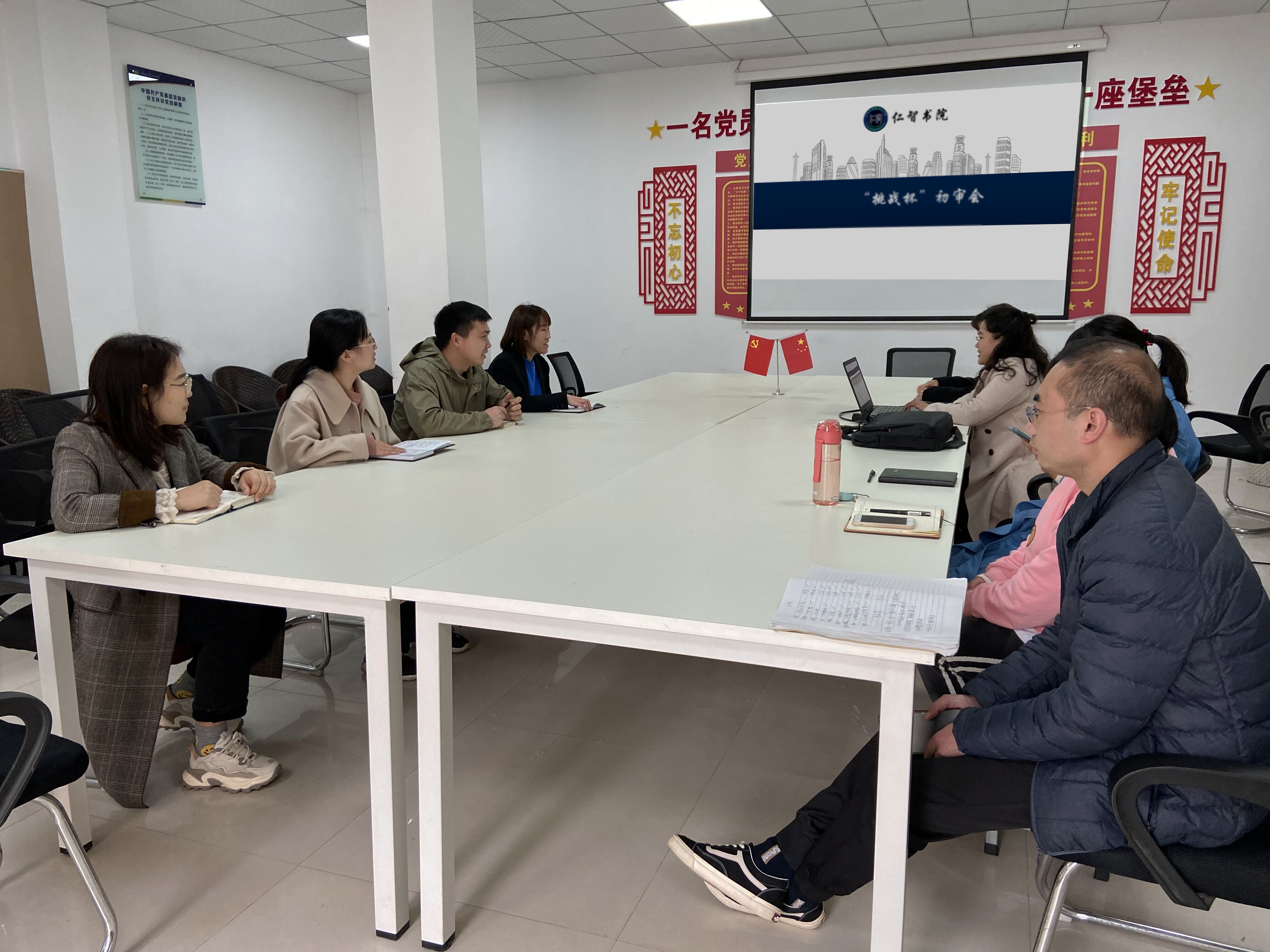 “挑战杯”全国大学生课外学术科技作品竞赛是由共青团中央、中国科协、教育部、全国学联和地方政府共同主办的全国竞赛活动。竞赛自创办以来,始终坚持“崇尚科学、追求真知、勤奋学习、锐意创新、迎接挑战”的宗旨,在推动广大学生参与学术科技实践、发现和培养创新型人才、促进青年创新人才成长、深化高校素质教育等方面发挥了积极作用,是当代大学生展现课外学术创新成果和综合素质的重要舞台,被誉为当代大学生科技创新的“奥林匹克”盛会。为营造书院良好的创新创业氛围,培养我院大学生创新意识、创意思维、创造能力和创业精神。4月8日上午,书院在仁智书院党务办公室举办“挑战杯”作品初赛评议会。本次评议工作由窦倩老师、朱洋洋老师等全体辅导员参与,对书院56件作品进行了客观、严格、公正、公平的筛选。