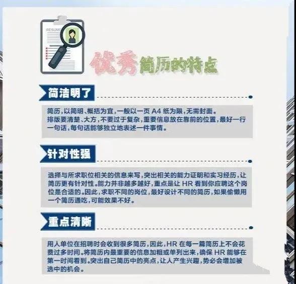 每个行业、每个公司、每个岗位的侧重点不同,对求职者的要求也不同,我们不可能用同一份简历去不同地方面试。这就要求,求职者制作的简历时要有针对性,最好多准备几份不同的简历。