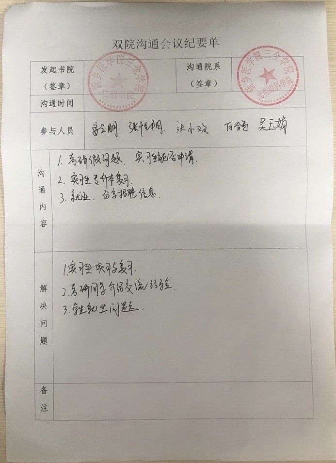 通过本次的双院沟通,双方及时了解彼此的工作需求,希望在今后继续保持密切的联系,共同努力,更好的服务学生,充分发挥双院育人优势。