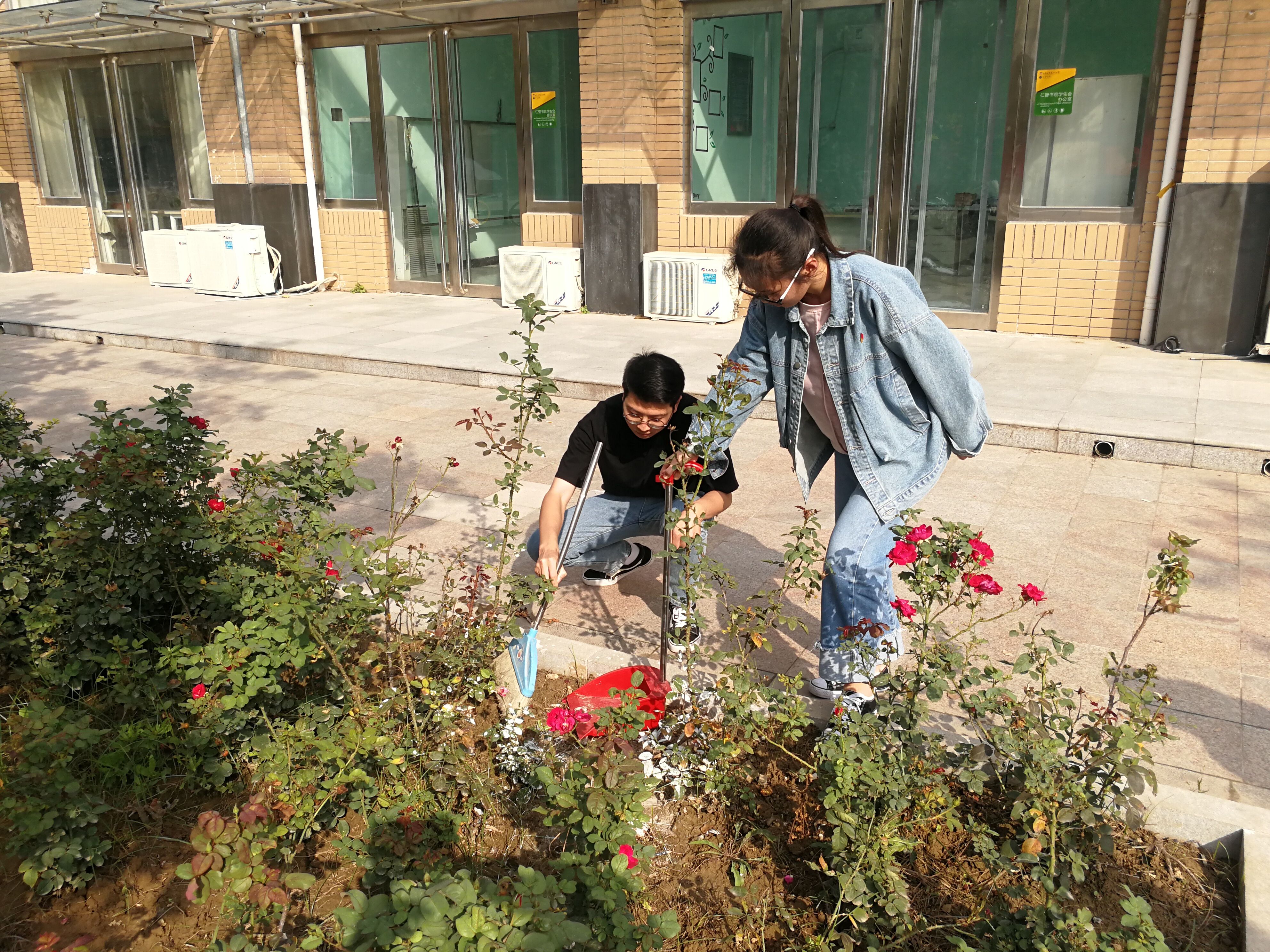 仁智书院全体党员热情高涨,不讲辛苦,不挑任务,呈现出一派热火朝天的劳动景象,用实际行动践行初心和使命。有的整理摆放在食堂和教学楼外停放的共享单车,为同学们畅通出行出一份力;有的为书院前的苗圃浇水、清除杂草;还有在郑州市中心医院实习的党员分批在门诊大厅维持秩序、协助导诊、帮忙挂号和取药,及时解决患者在就诊过程中遇到的困难等等。