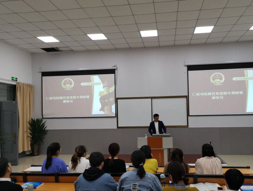 为庆祝中华人民共和国成立70周年,深入学习贯彻党的十九大精神,了解中国共产党从1921年7月23日成立以来整个发展过程的全部历史,2019年10月17日,在仁智书院学生第五党支部书记孙绍钦的主持下,仁智书院学生第五党支部全体党员在郑州市中心医院教学基地开展“共产党的发展和十九大”党课学习活动。
