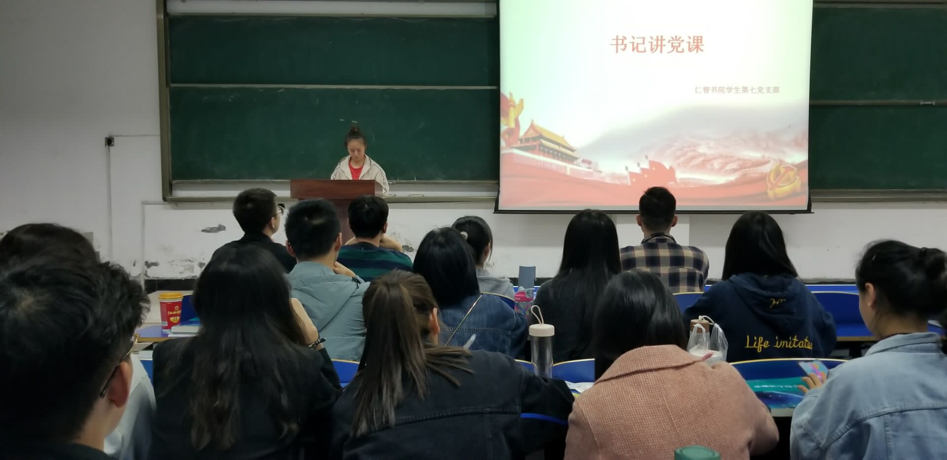 为深入学习贯彻习近平新时代中国特色社会主义思想和党的十九大精神,进一步推进“不忘初心、牢记使命”主题教育,2019年10月13日,仁智学生第七党支部在省医教学基地七楼教室开展了书记讲党课活动。本次活动以庆祝中华人民共和国成立70周年为主题,大力弘扬了民族文化和爱国主义精神。