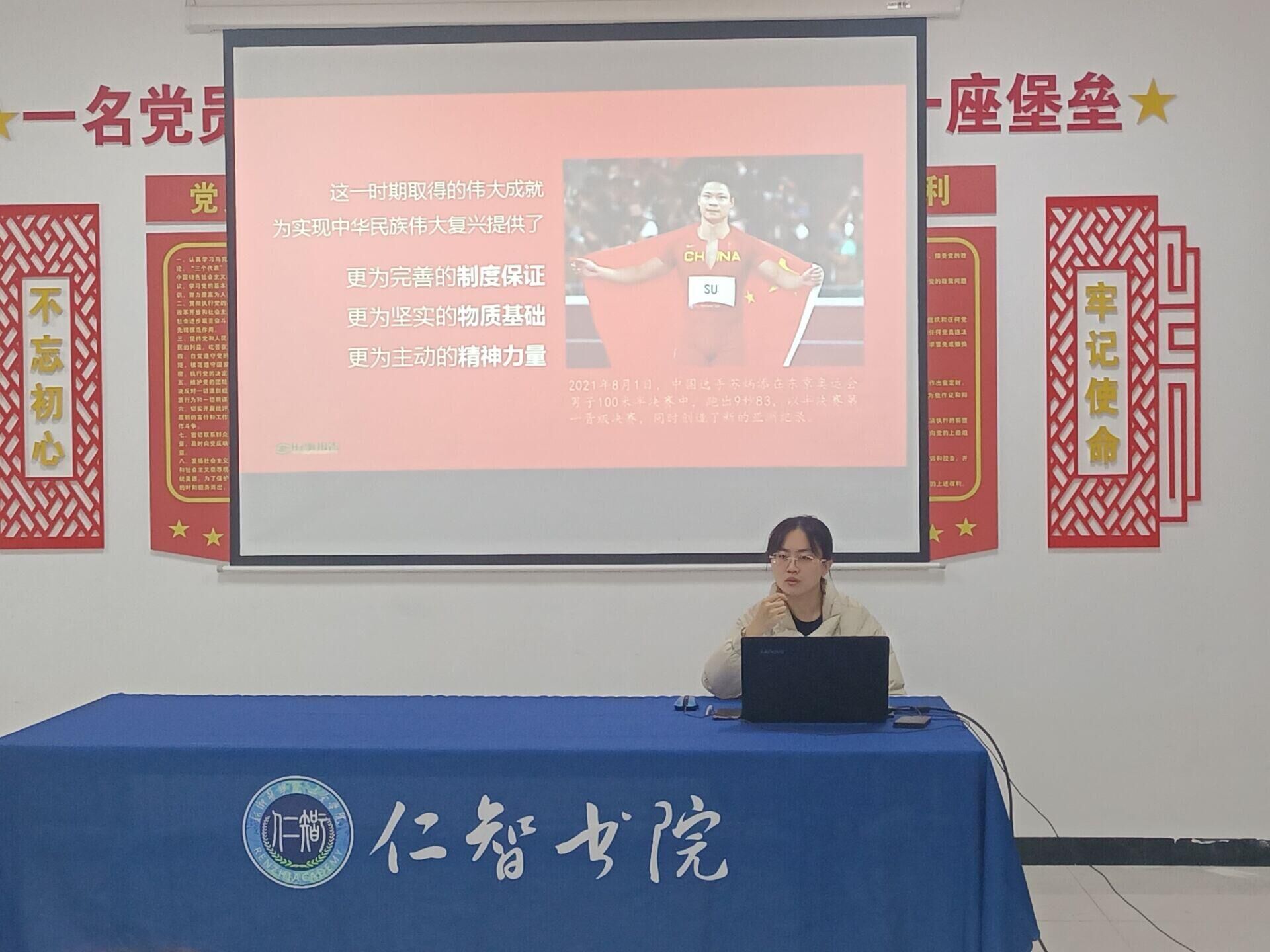 为了更加真切地体会伟大建党精神,引导学生坚定不移听党话、跟党走,把个人理想融入时代主题、汇入复兴伟业,勇做担当民族复兴大任的时代新人。11月28日,我院党总支书记马苏娟以“奋斗百年路 启航新征程”为题为仁智书院学生开展思政专题课,仁智书院部分学生代表参加。
