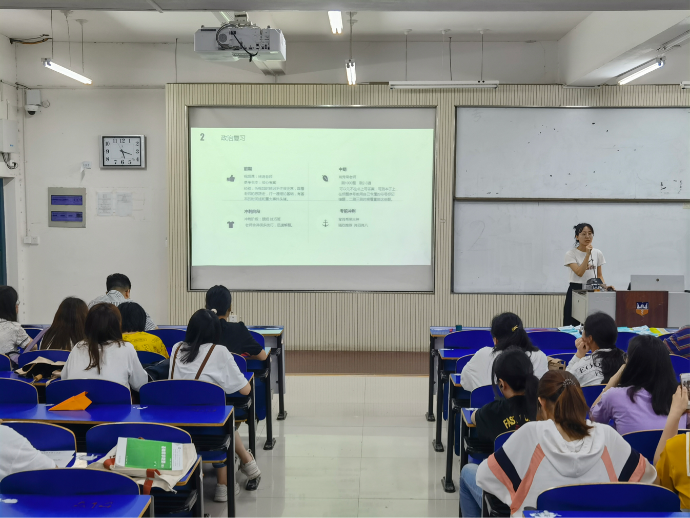 会上,分享人从备考策略、合理作息、学校选择、不同科目的复习方法等角度各自阐述了自己的观点和经验。
