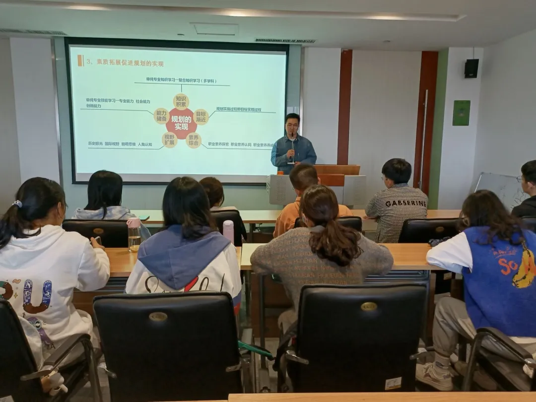 为了普及职业生涯规划知识,引导学生树立正确的成才观、就业观和职业规划意识,科学规划自己的职业生涯和学业生涯,10月15日中午,仁智书院在图书馆五楼报告厅举行了职业生涯规划主题讲座。本次活动由仁智书院就业专干安云朋老师主讲。