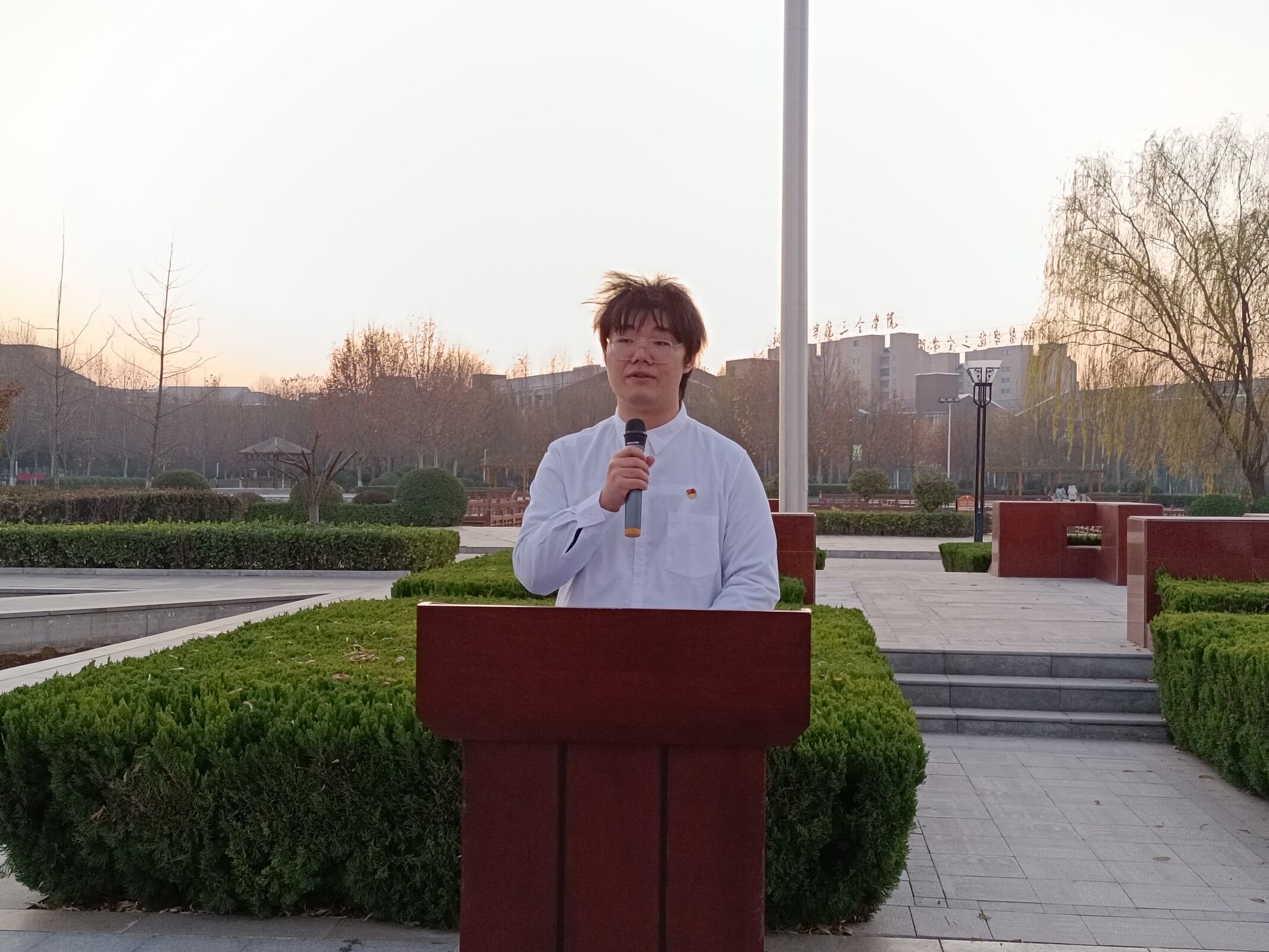 学生代表史家昕以《一二九运动旗帜永远飘扬》为题目进行国旗下的演讲,“青年者,国家之魂”,国家的前途和命运离不开青年的前途和命运,没有青年的牺牲和奋斗精神,就没有整个民族素质的提高,他表示作为青年学生要有一颗赤诚的爱国之心,坚定理想信念,为祖国和人民奉献自己的一生。