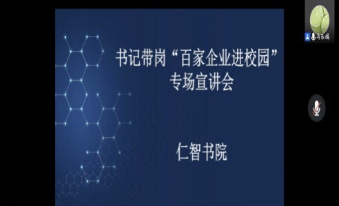 为贯彻教育部、省教育厅促进2022届毕业生高质量就业系列文件精神,进一步做好当前疫情形势下就业保障工作,千方百计开拓更多就业岗位和机会,5月26日,仁智书院举办书记带岗“百家企业进校园”专场宣讲会。仁智书院2022届毕业生广泛参与,全体毕业班辅导员参加本次活动。活动由仁智书院党总支书记马苏娟主持。