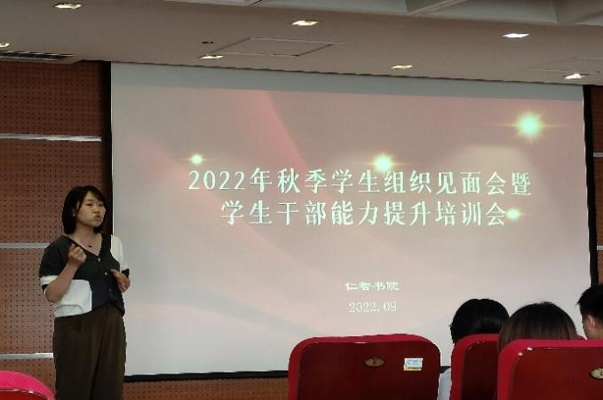 为增强我院学生干部的全局意识、服务意识、责任意识、效率意识,加强学生队伍的凝聚力,提高干部整体素质,使学生干部快速适应工作,增强干部们工作的针对性,系统性,增强干部们的相互了解,加强各组织间沟通,仁智书院于2022年9月27日召开本学期第一次学生干部培训会,书院团总支书记窦倩主持,社联、青志联、学生会以及书院团副组织参加培训。