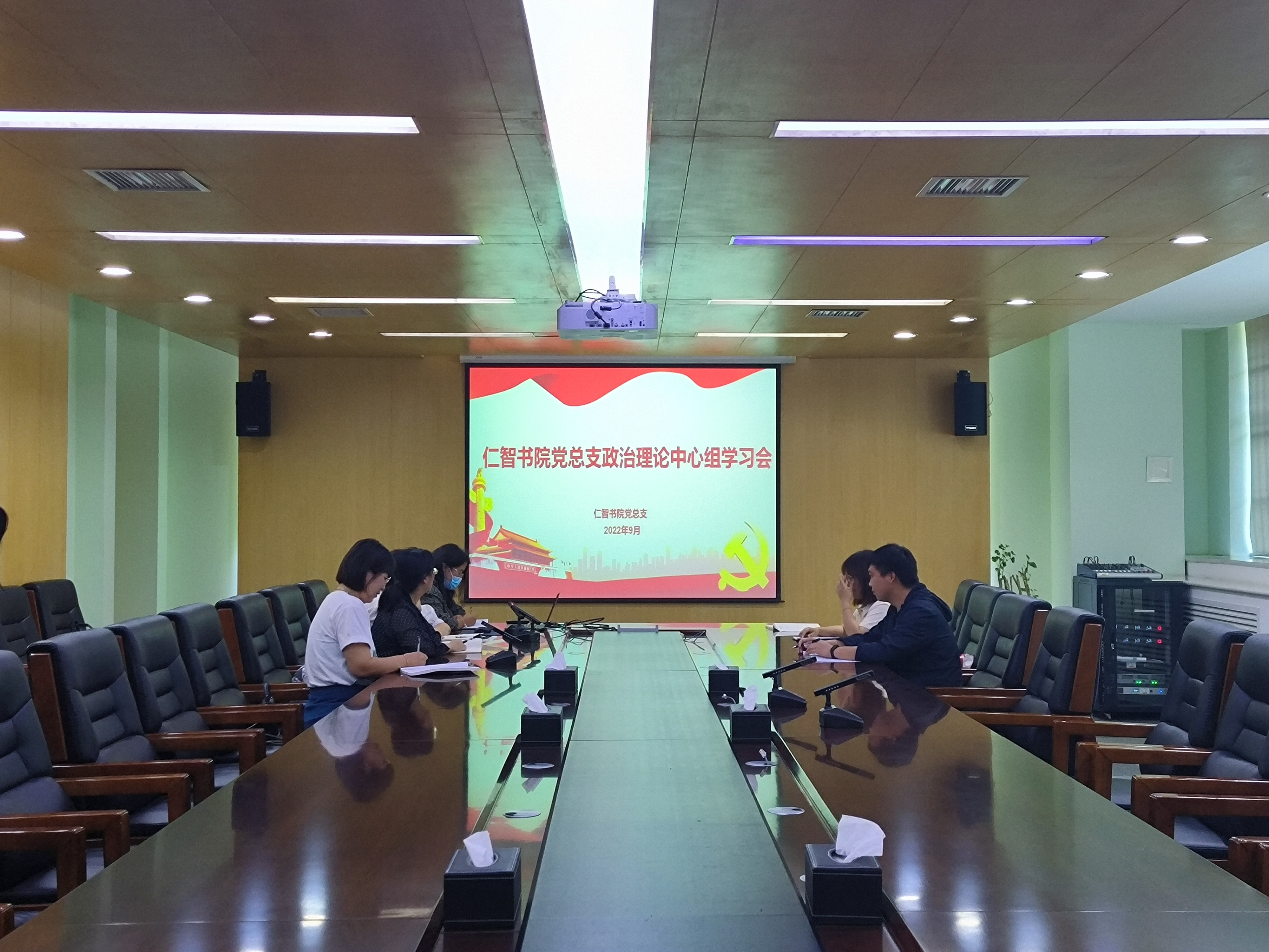 9月29日,仁智书院党总支理论学习中心组于第三会议室召开九月份政治理论学习会议。本次学习由书院党总支书记马苏娟主持,重点学习了《习近平在省部级主要领导干部“学习习近平总书记重要讲话精神,迎接党的二十大”专题研讨班上的重要讲话》《习近平谈治国理政》《中共新乡医学院三全学院委员会贯彻落实省委第五巡视组反馈意见整改措施》《中共新乡医学院三全学院委员会贯彻落实十一届省委第一轮巡视意识形态工作责任制专项检查反馈意见整改工作方案》和《楼阳生在省委统战工作会议上强调巩固完善大统战工作格局为现代化河南建设凝聚人心汇聚力量》等文件。
