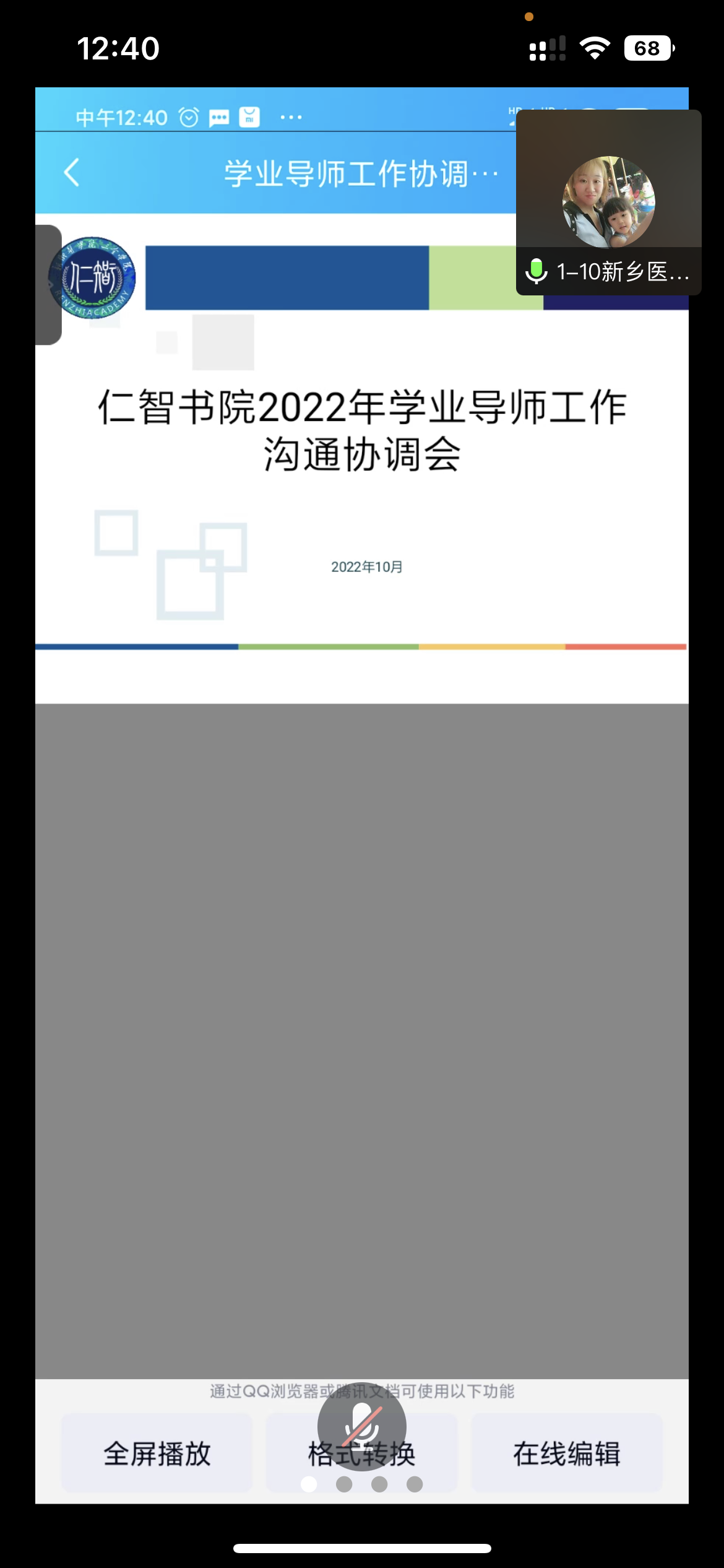 接着,文件学习完毕之后,窦倩针对各位导师提出的问题、困惑进行现场解答,对于无法解答的问题,统一记录并反馈到学务部。并邀请2021-2022学年优秀专业类学业导师为各位学业导师进行经验分享。