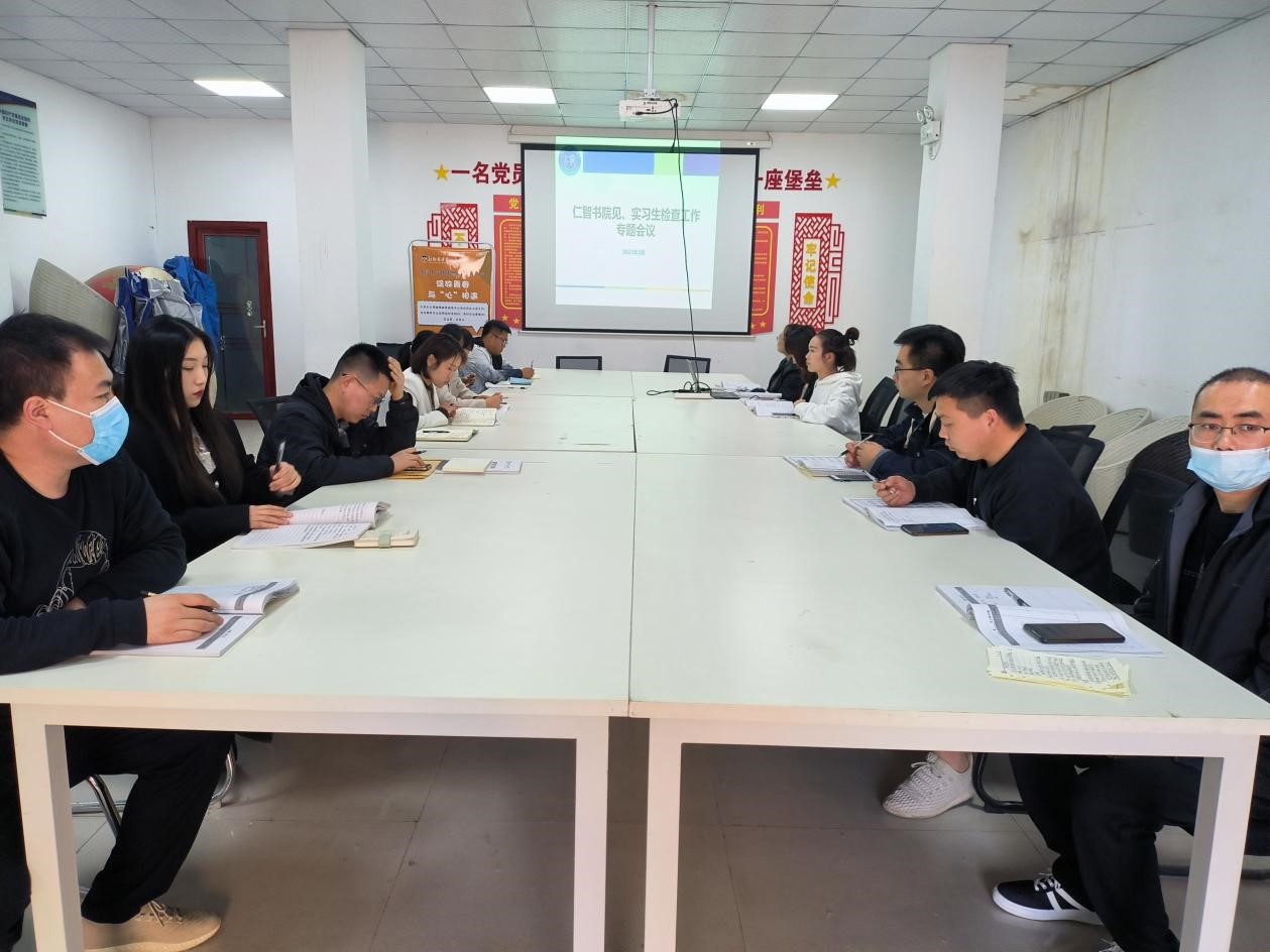 为深入了解本学期学生实习情况,加强书院与实习单位的联系,仁智书院梁静、张娅楠、王鹏飞等6位辅导员根据学校的相关安排于3月16日—3月25日期间前往开封、南阳、商丘三个地区10个实习医院开展检查工作,仁智书院于3月31日召开见、实习生检查工作专题会议,仁智书院全体教职工参与。