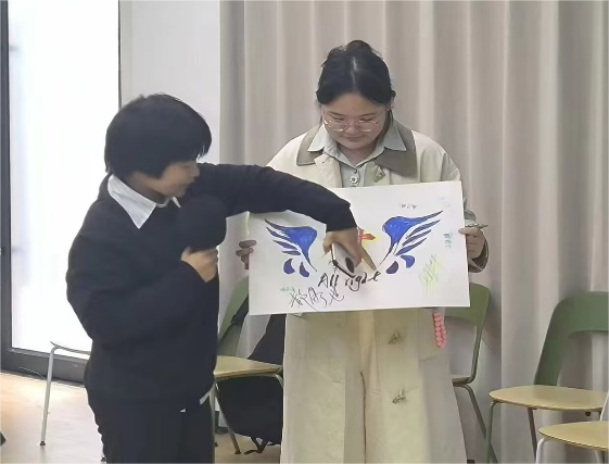 为了锻炼大家的动手和团队协作的能力,王老师带领大家进行“笔墨横姿”绘画活动,同学们天马行空的想象力在此刻碰撞出绚烂的火花。绘画不仅给同学们带来了乐趣,也给予了同学们心灵的慰藉。