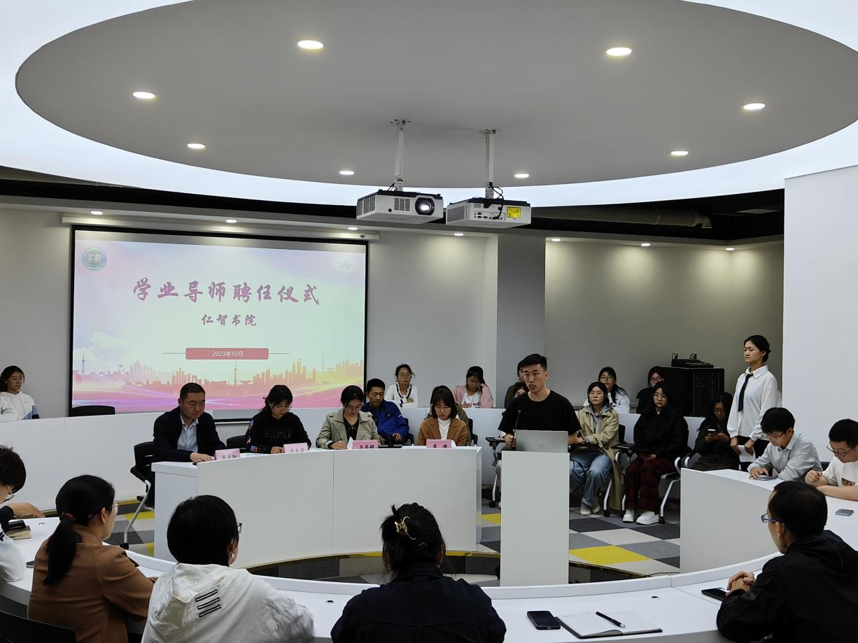 为全面落实立德树人根本任务,深入推进“一站式”学生社区建设,强化双院协同育人成效,提升我院学生的学术能力和综合素质,10月26日,仁智书院举办2023级学业导师聘任仪式。出席本次聘任仪式的有仁智书院党总支书记马苏娟、基础医学院副院长李勇莉、口腔技术学院副院长张紫阳、学务部郑海瑛、相关学业导师和学生代表。