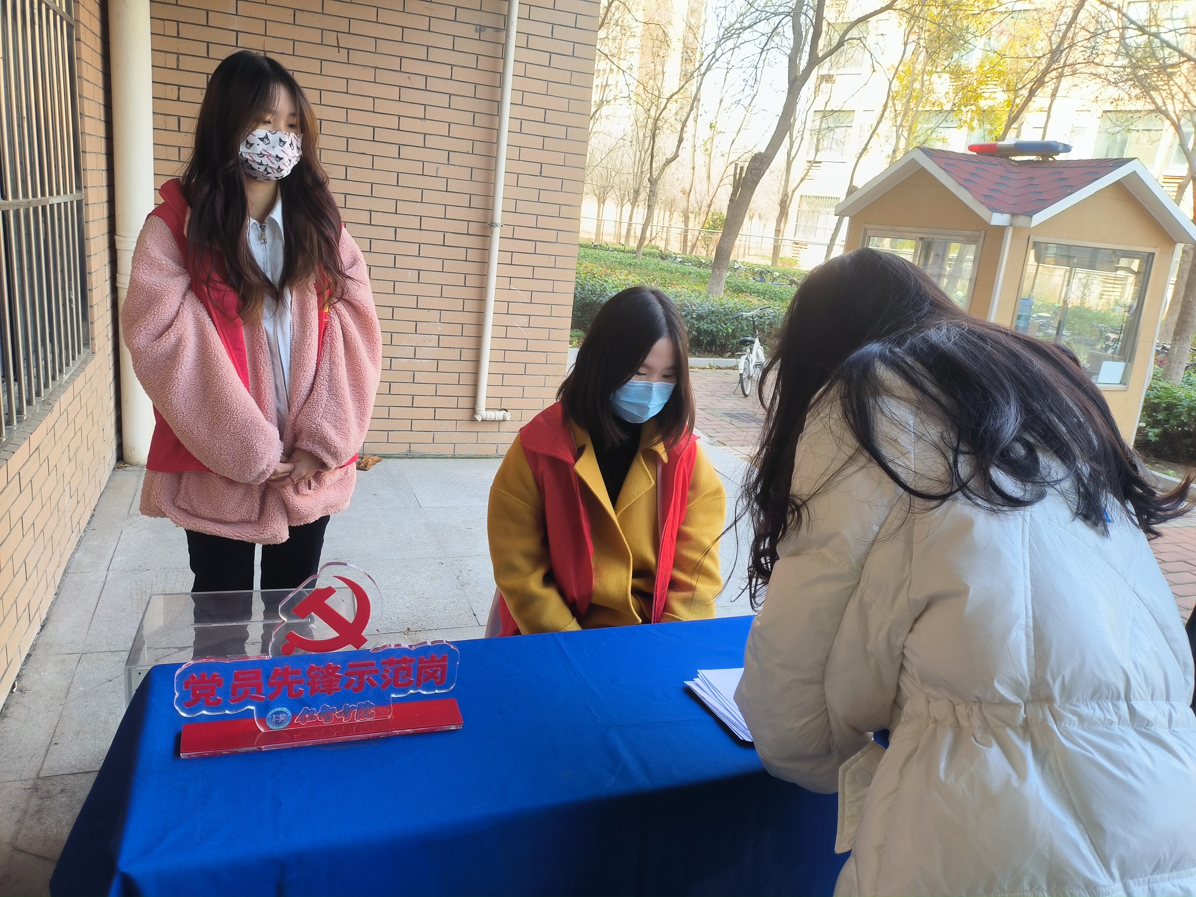 在宿舍楼前,党员志愿服务台积极为同学解疑答惑,帮助同学结解决生活和学习中的难题;在宿舍楼,“安全常伴”志愿队对消防安全器材、公共区域限位器情况进行全面排查,为学生排除安全隐患,助力宿舍安全生活;在宿舍内,防电信诈骗志愿队为同学介绍常见的诈骗手段,切实增强大学生的防诈骗意识;在宿舍公共区域,清扫志愿队对不怕辛苦,耐心细致地对宿舍公共区域进行清扫,为同学们创造一个整洁的生活环境。